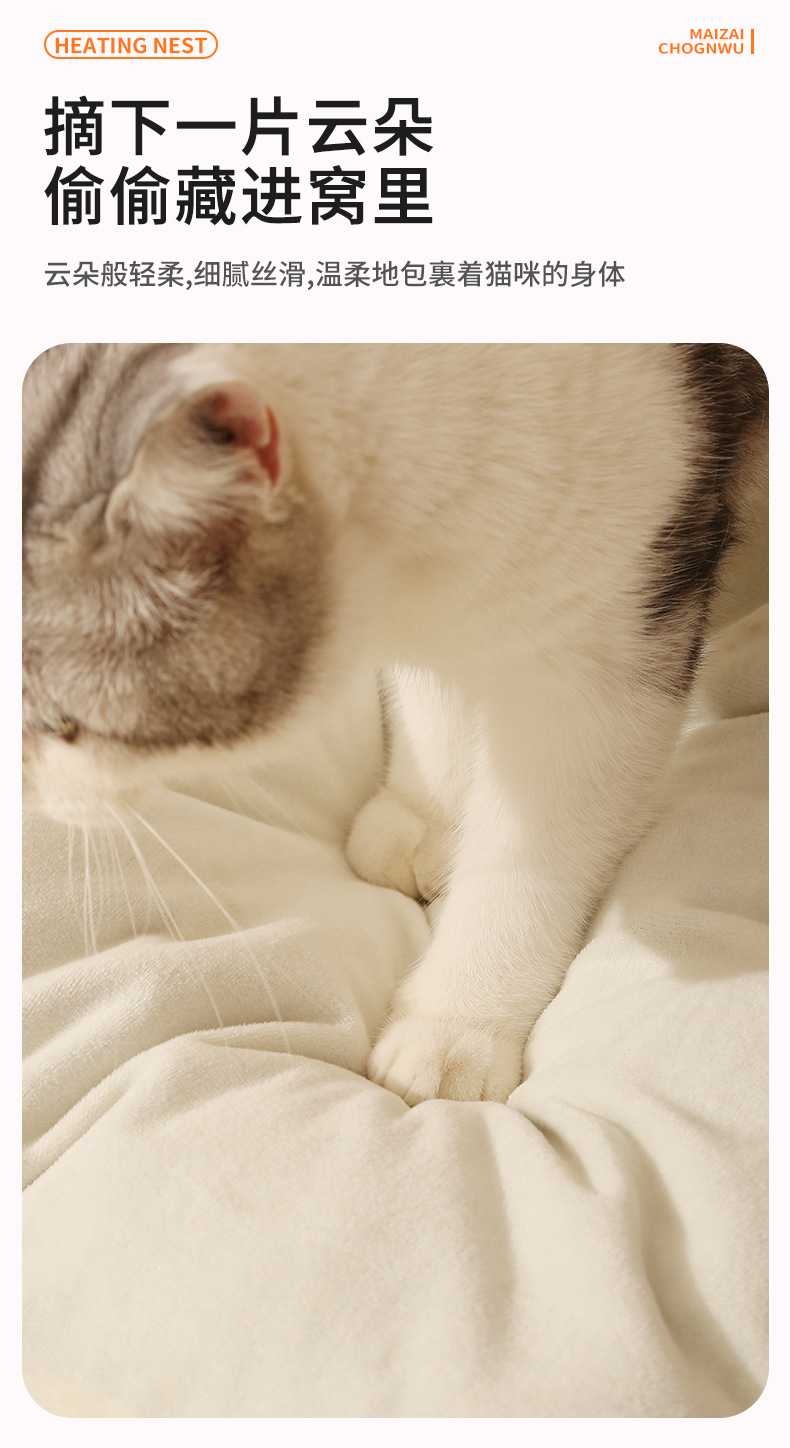 1.能自动恒温,给猫咪提供舒适的温度环境,避免温度过高或过低给猫咪带来不适。