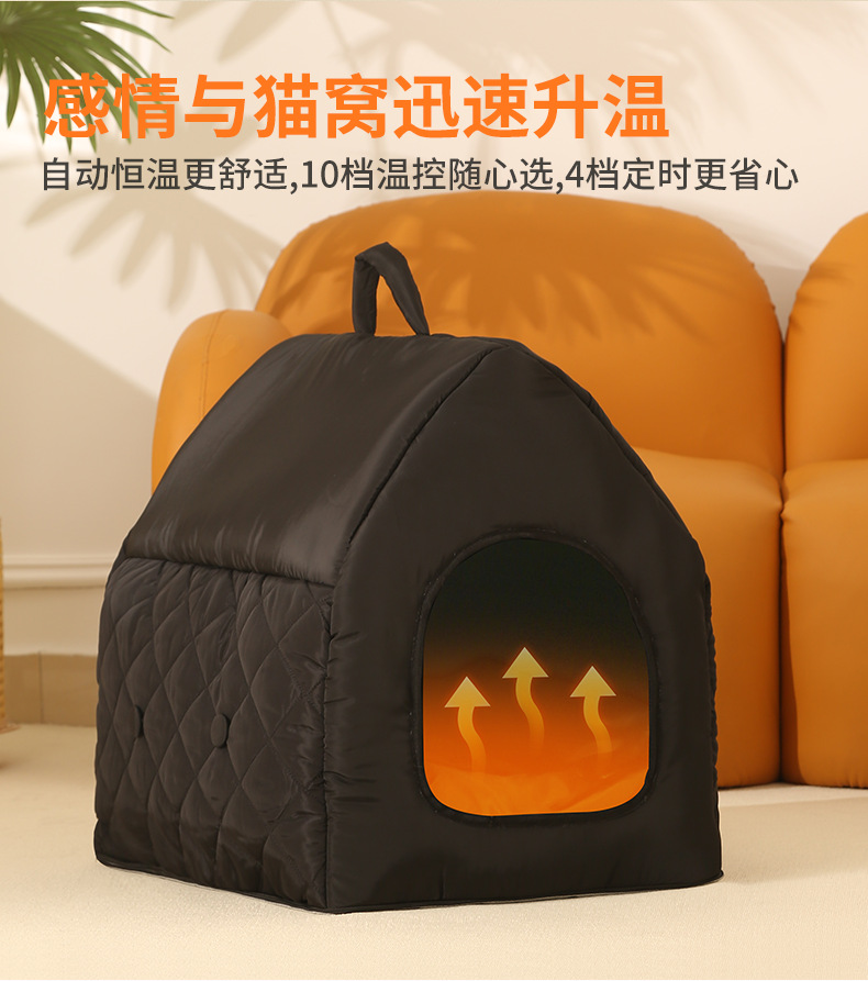 2.拥有 10 档温控可供选择 ,主人可以根据实际需求和环境温度,自由调节猫窝温度,满足不同季节、不同场景的使用需求。
