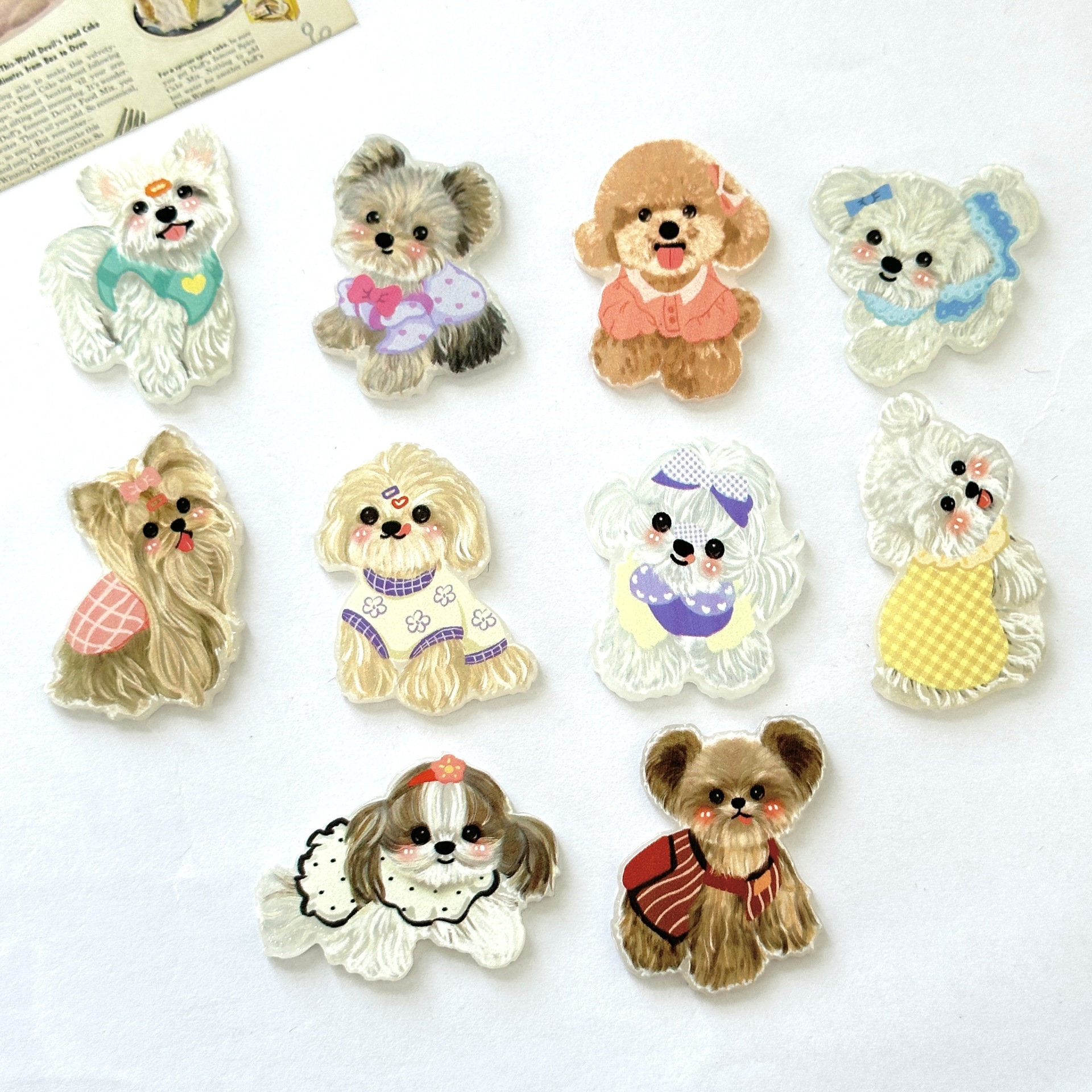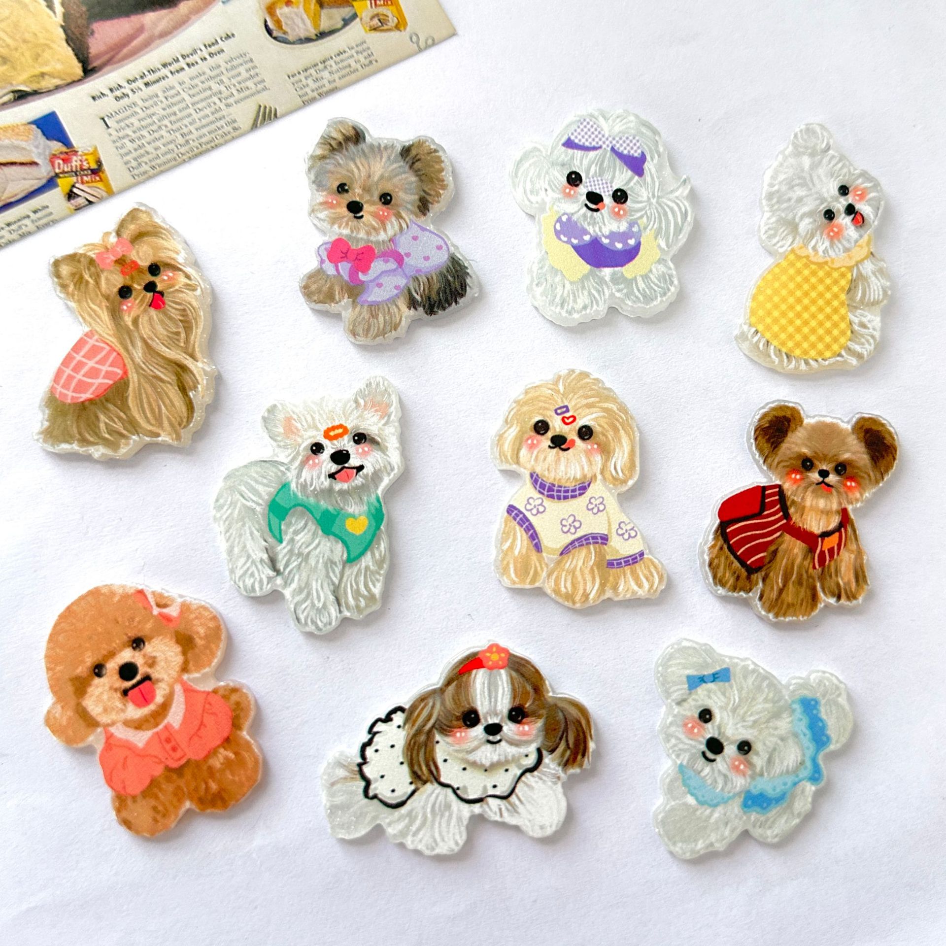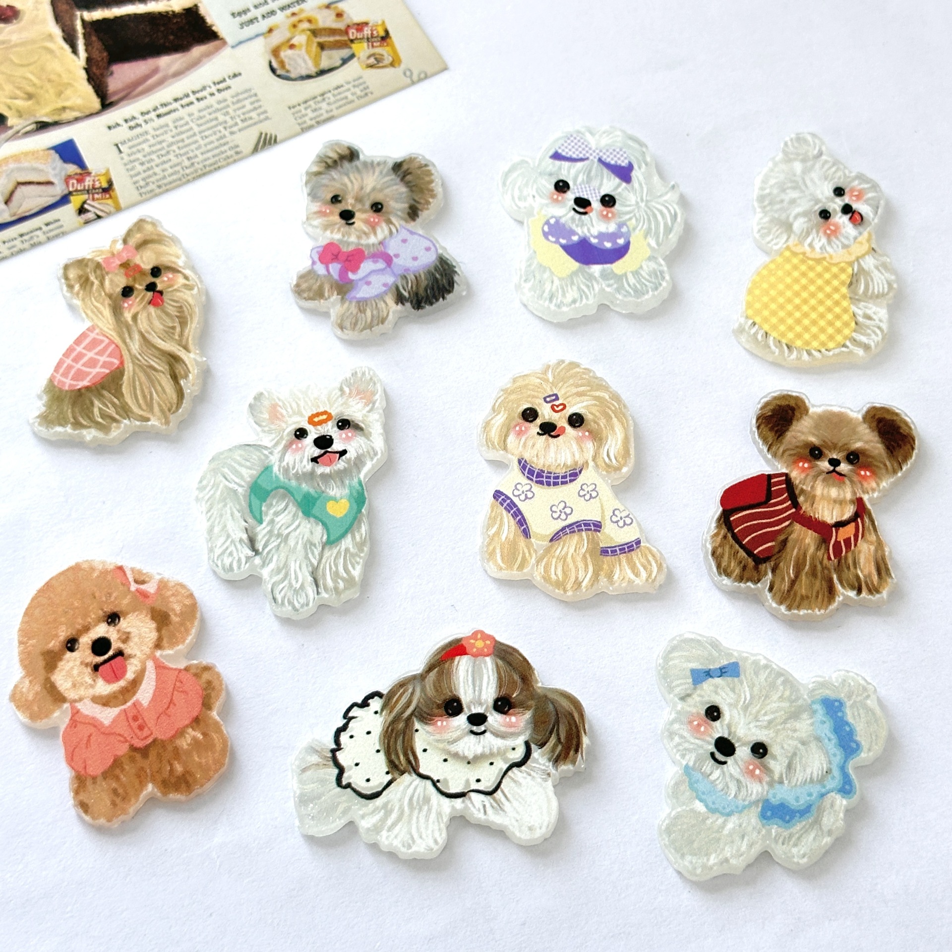 만화 귀여운 봉제 강아지 아크릴 패치 DIY 수제 보석 배지 PP 클립 냉장고 액세서리 도매