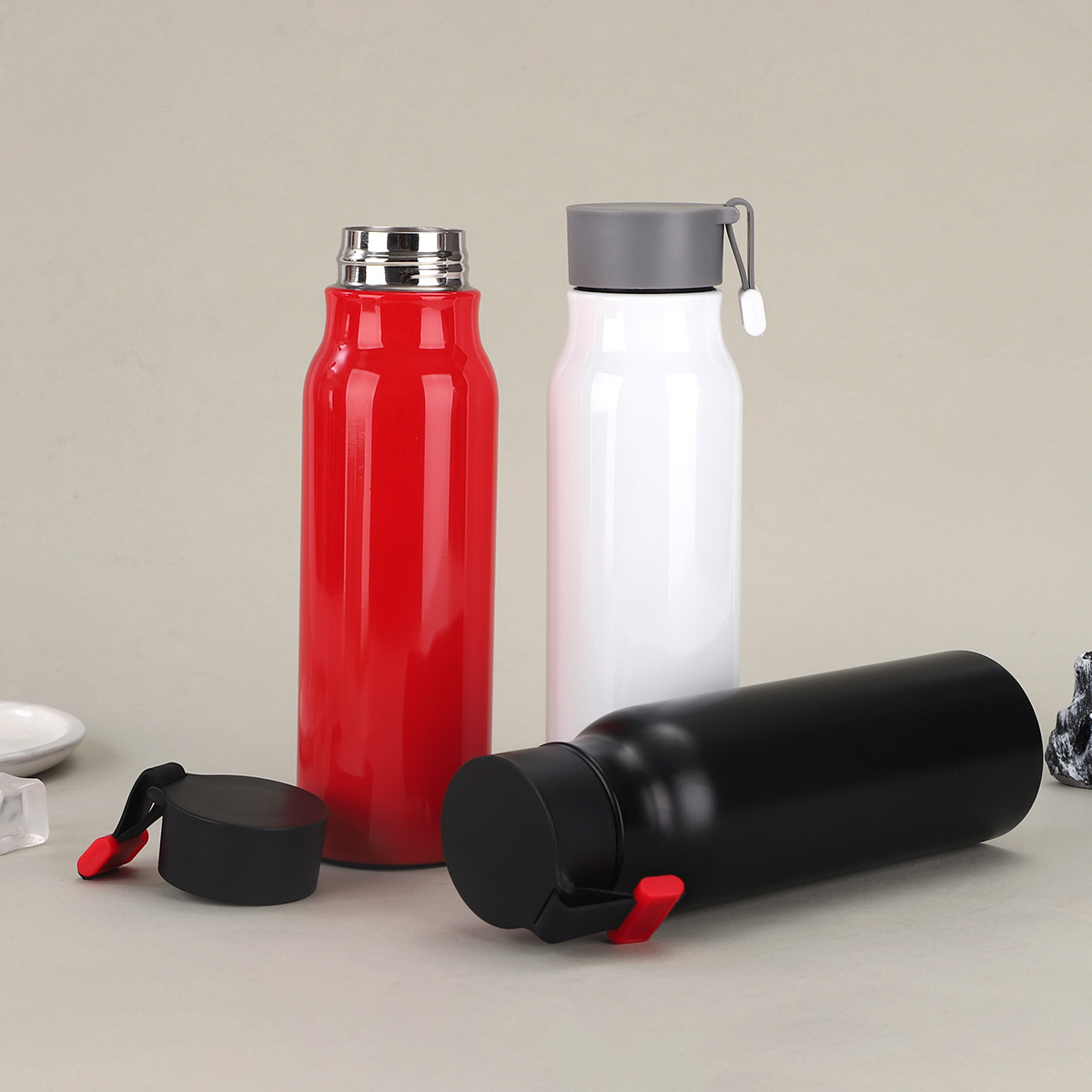 새로운 창조적 인 스포츠 주전자 야외 끈 휴대용 등산 냄비 높은 색상 가치 304 스테인레스 스틸 스트레이트 바디 보온병 컵