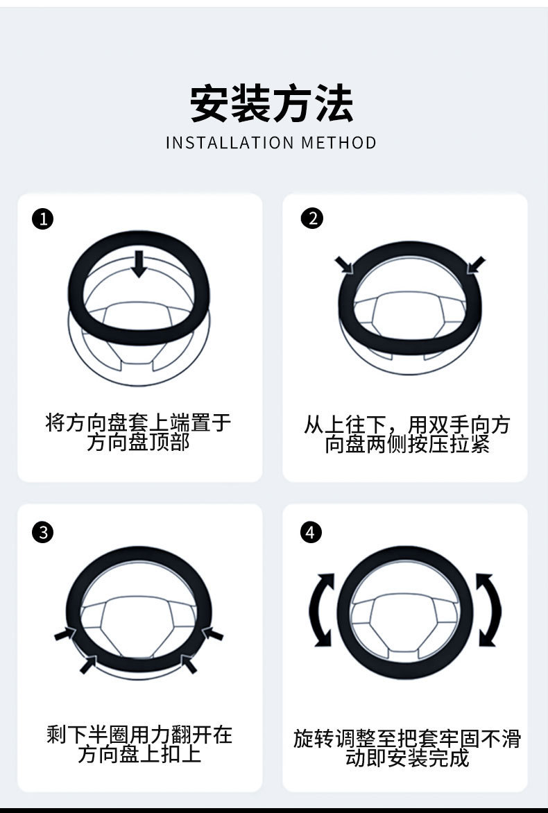 【安装方法】:套在方向盘即可使用