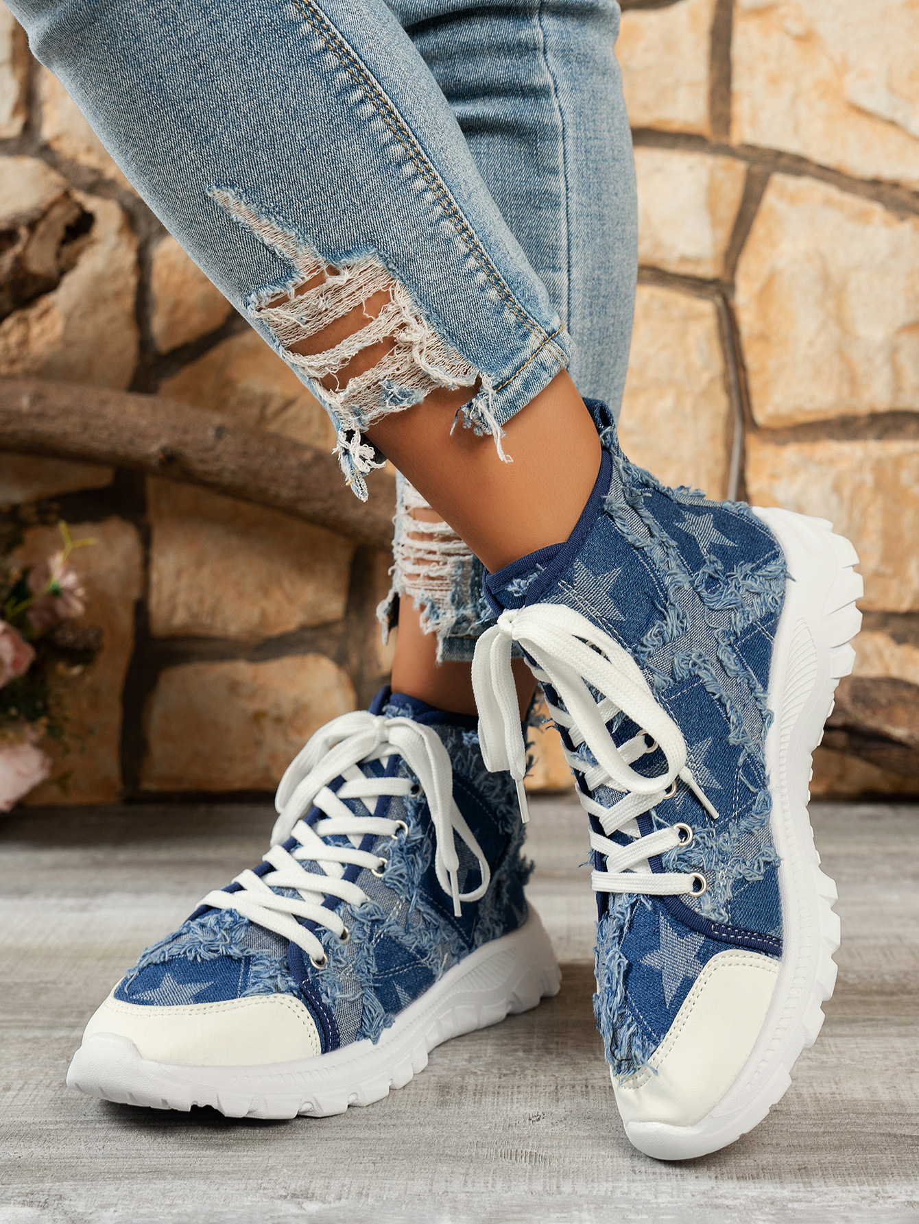 24 가을 새로운 두꺼운 밑창 하이 탑 캔버스 신발 여성 대외 무역 플러스 사이즈 데님 유럽과 미국의 편안한 아웃웨어 올 매치 여성 신발스토어 가기