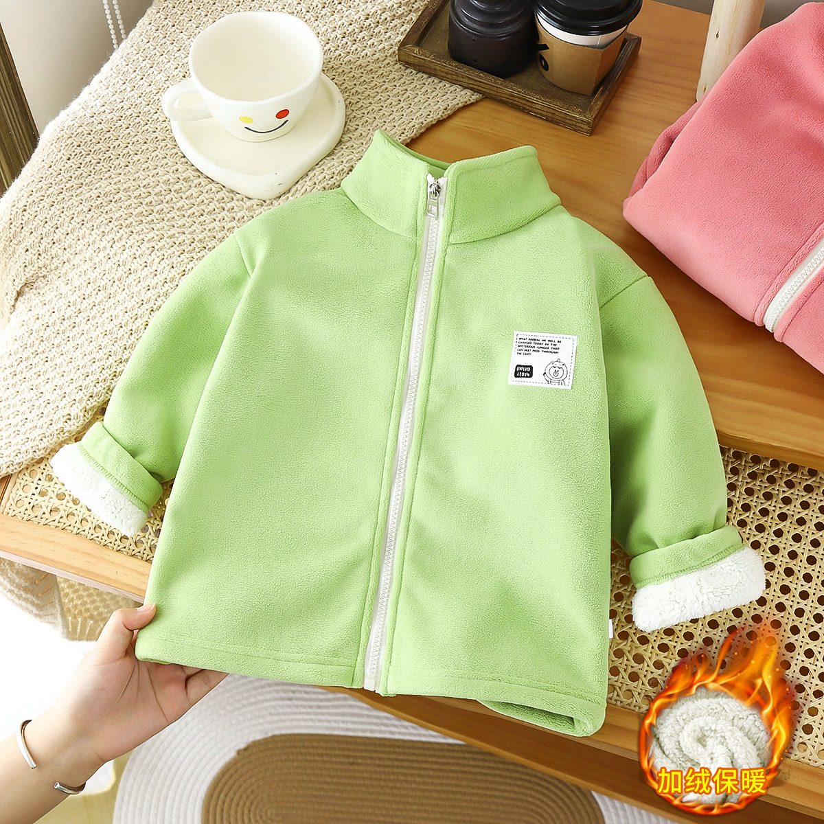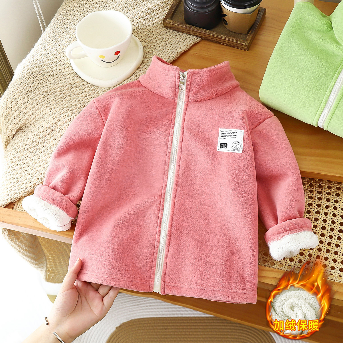 가을과 겨울 어린이 올리 벨벳 재킷 소년 기모 칼라 탑 걸스 두꺼운 따뜻한 원피스 벨벳 카디건