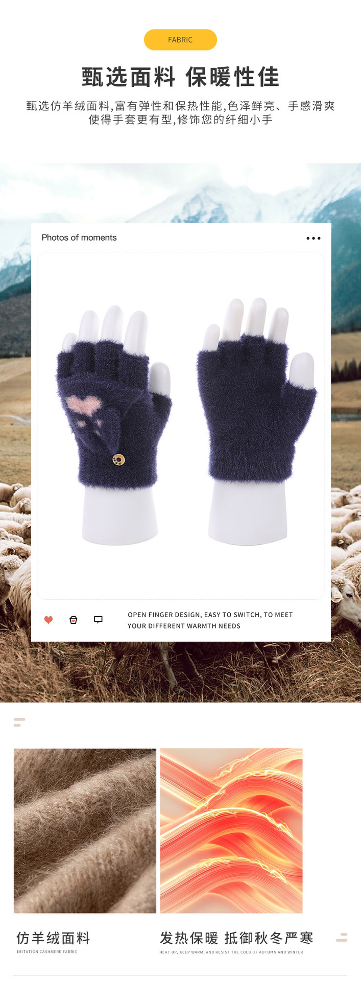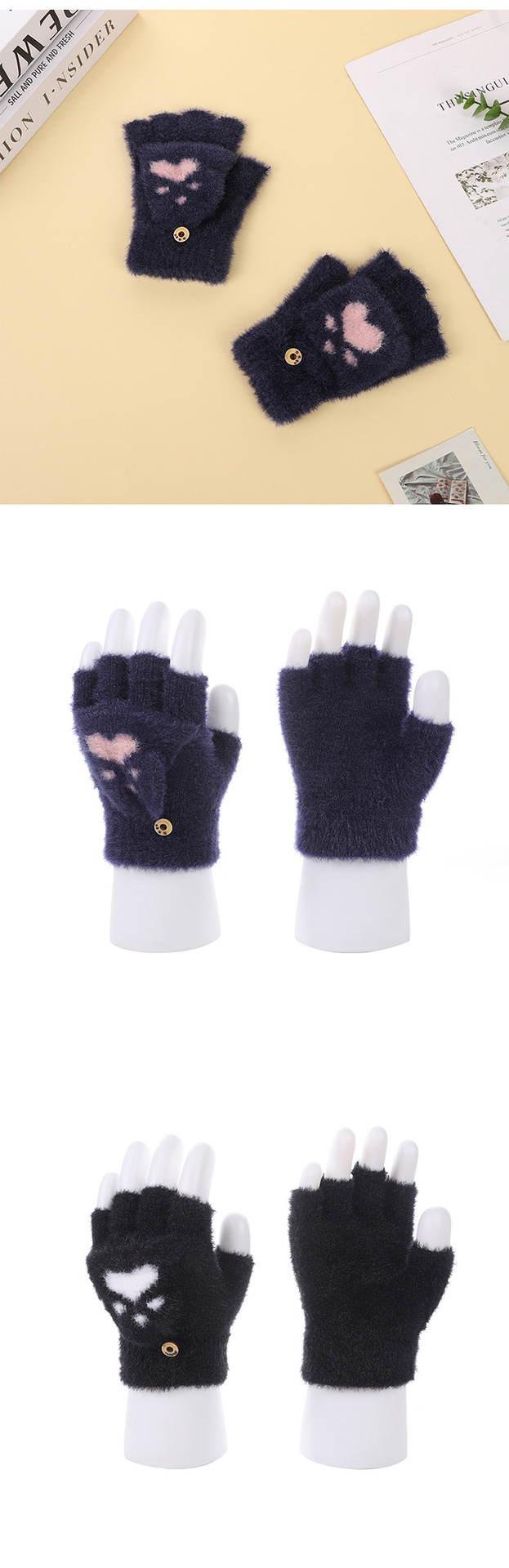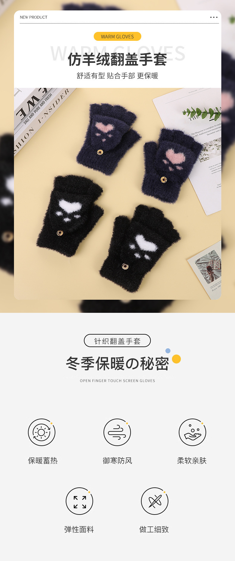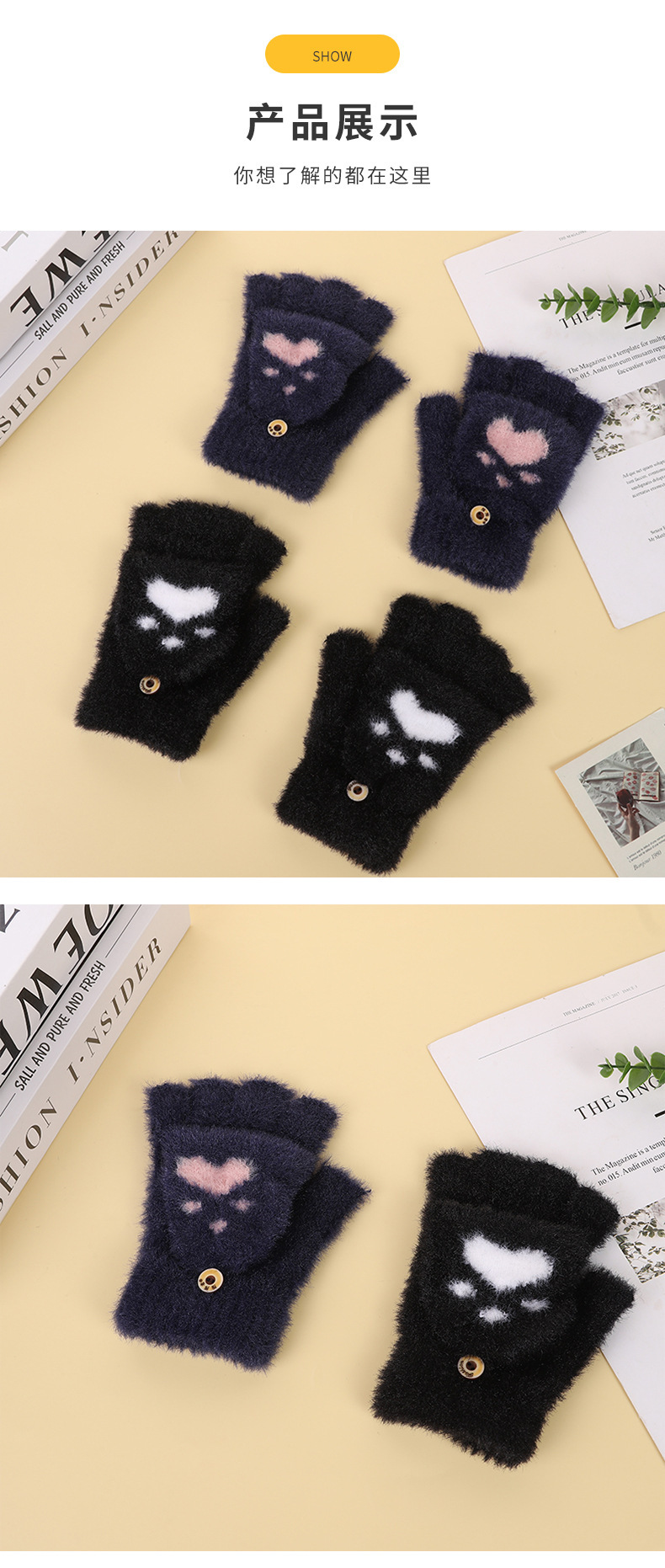 고양이 발톱 장갑 여성의 겨울 따뜻한 기모 두꺼운 학생 유행 글쓰기 사이클링 귀여운 니트 하프 핑거 플립 커버 장갑