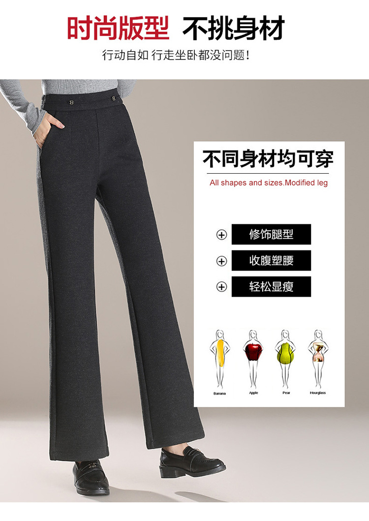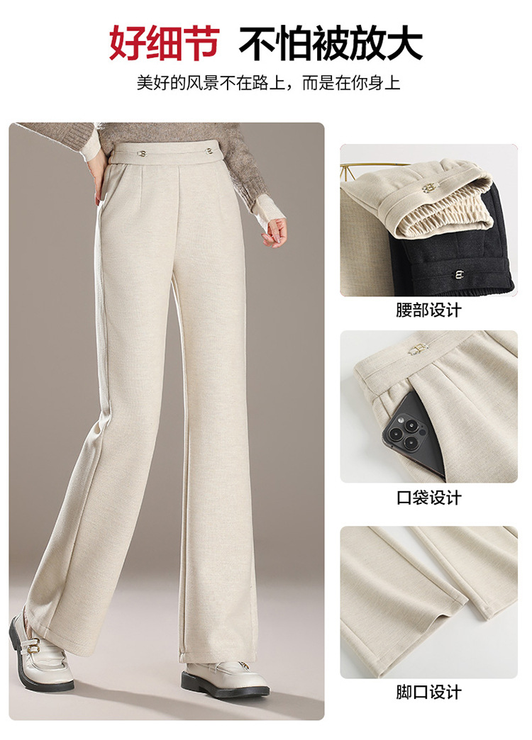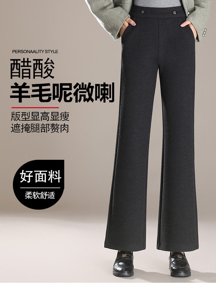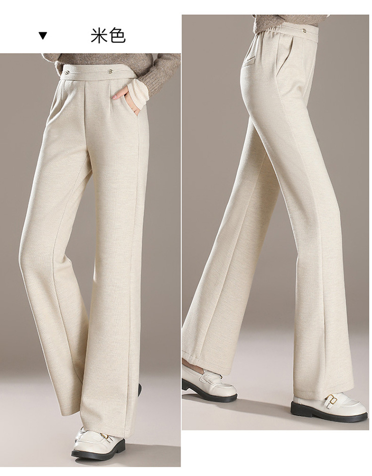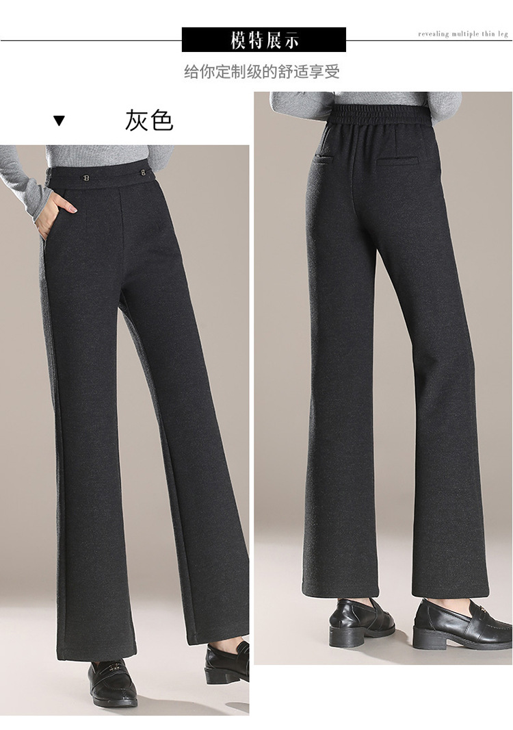기모 두꺼운 마이크로 팬츠 여성의 겨울 2024 새로운 울 바지 높은 허리 슬리밍 트럼펫 여성용 바지스토어 가기