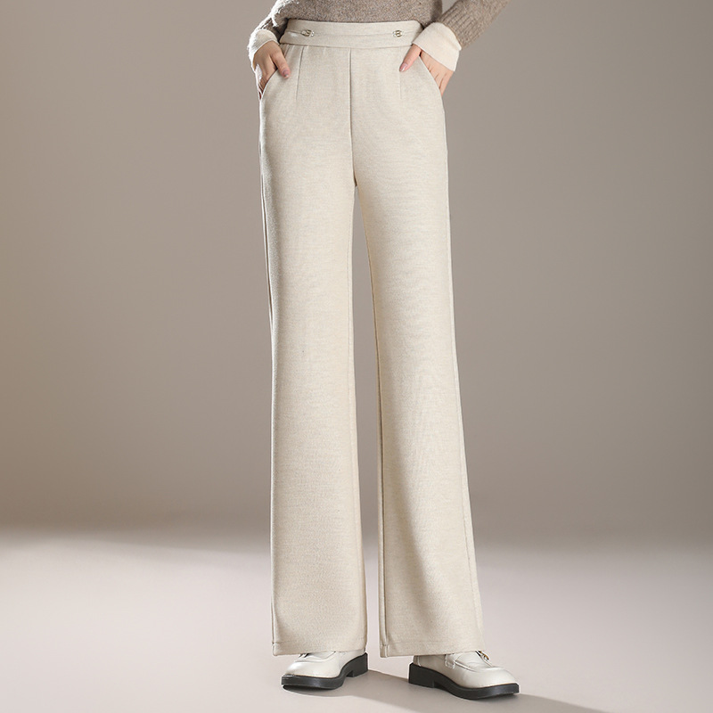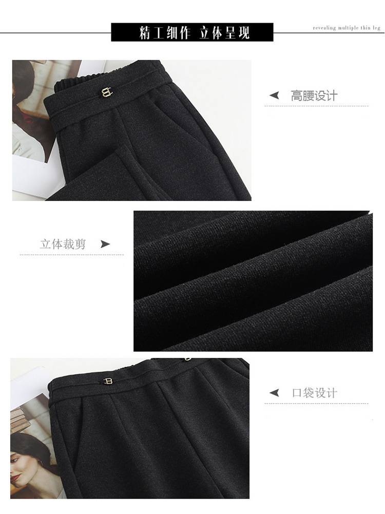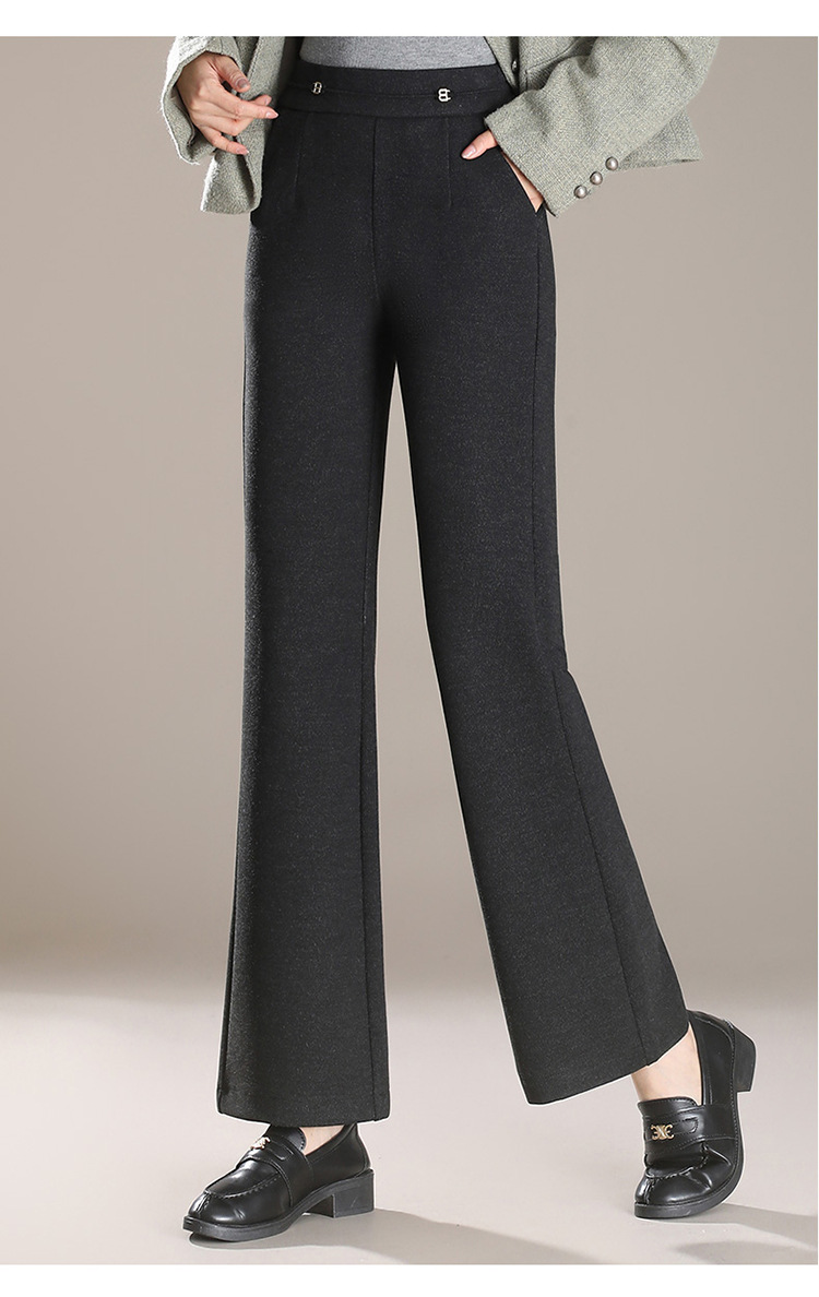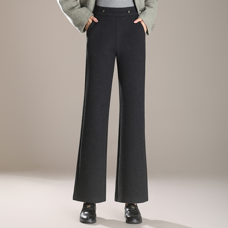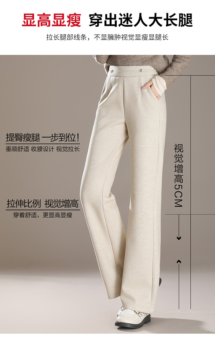기모 두꺼운 마이크로 팬츠 여성의 겨울 2024 새로운 울 바지 높은 허리 슬리밍 트럼펫 여성용 바지스토어 가기