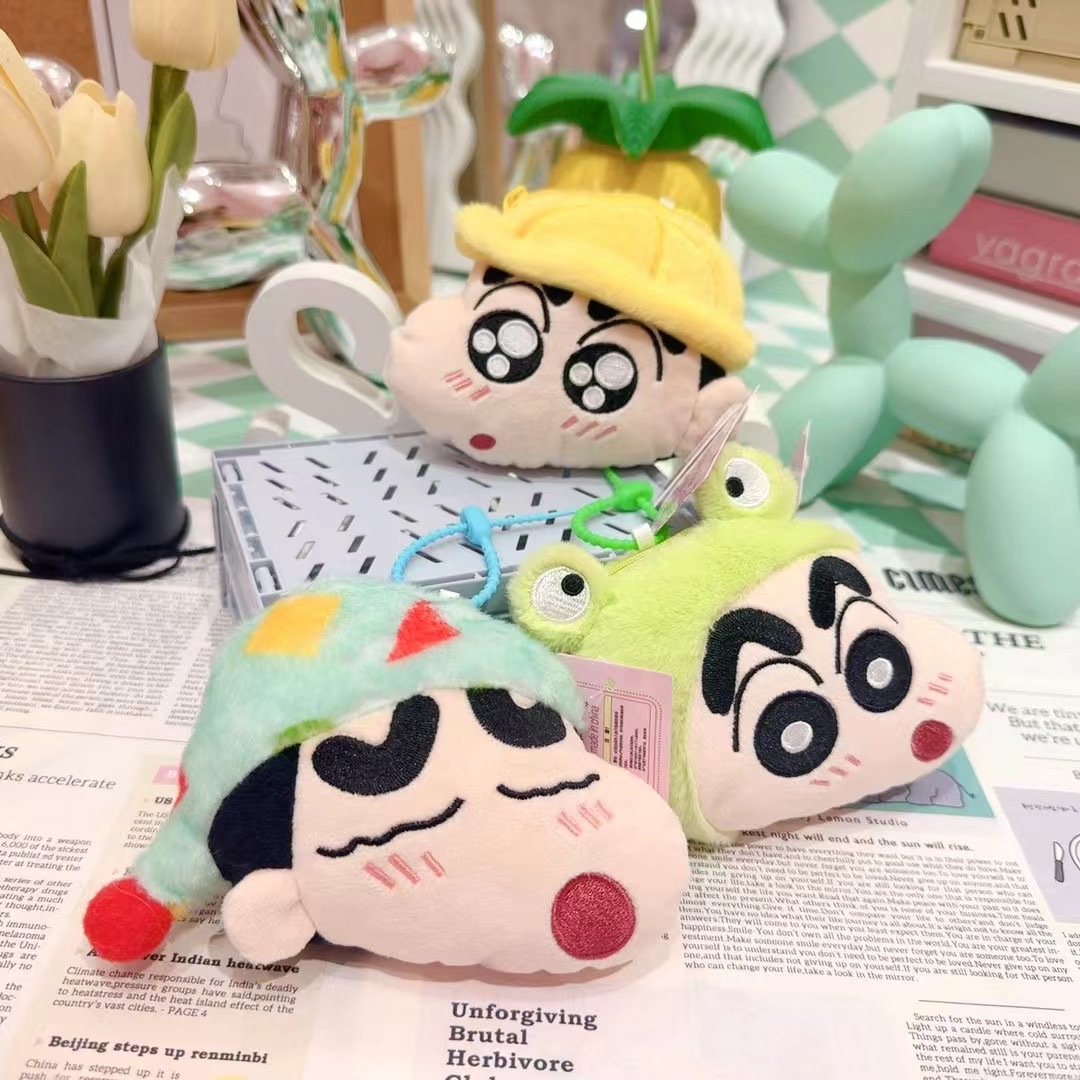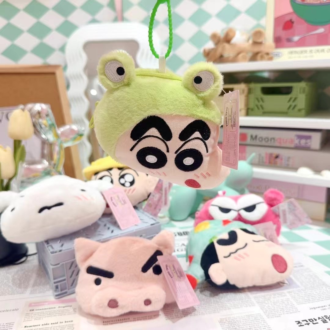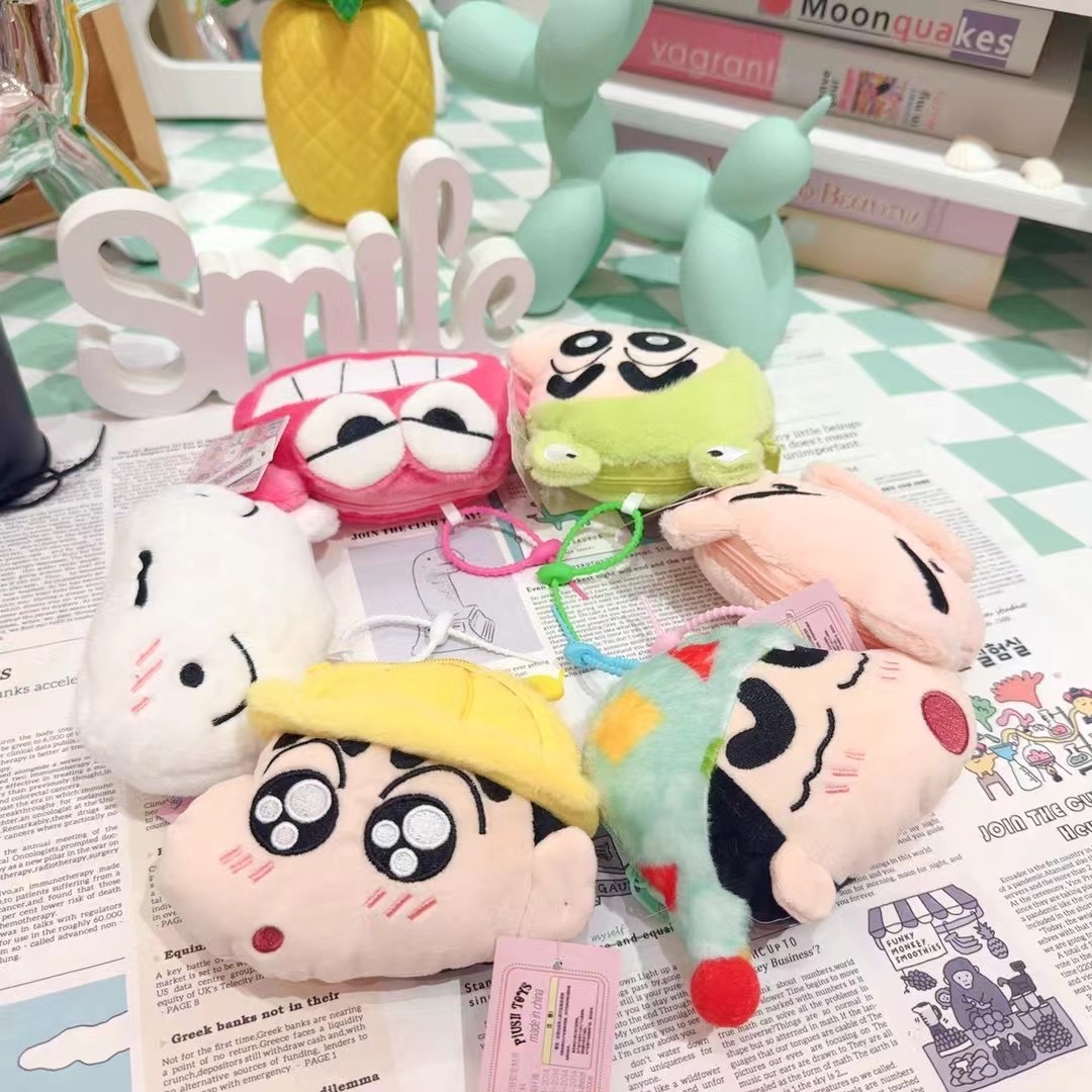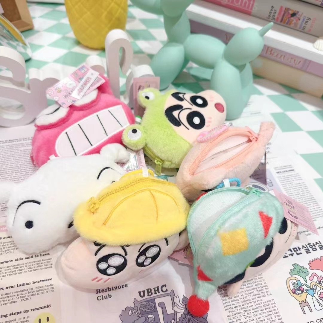 스팟 애니메이션 크레용 신짱 동전 지갑 애완 동물 작은 흰색 개 플러시 장난감 가방 펜던트 놀이 도시 인형 뽑기 기계스토어 가기