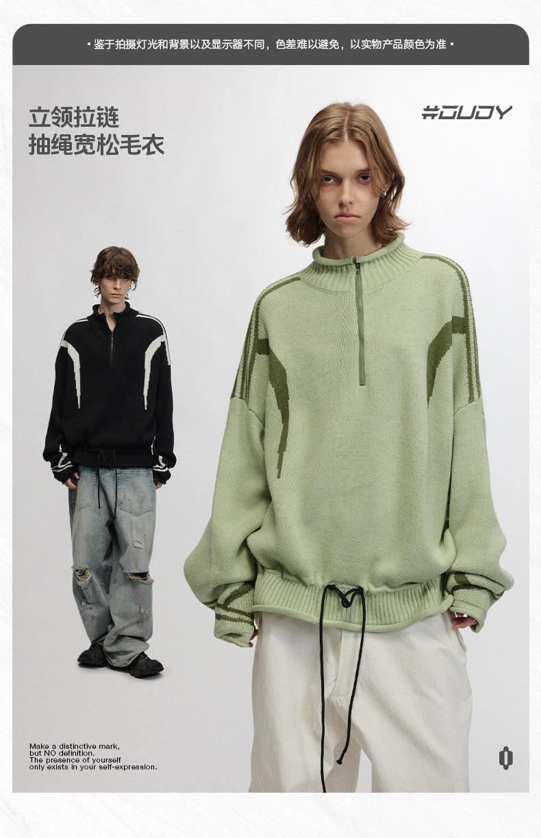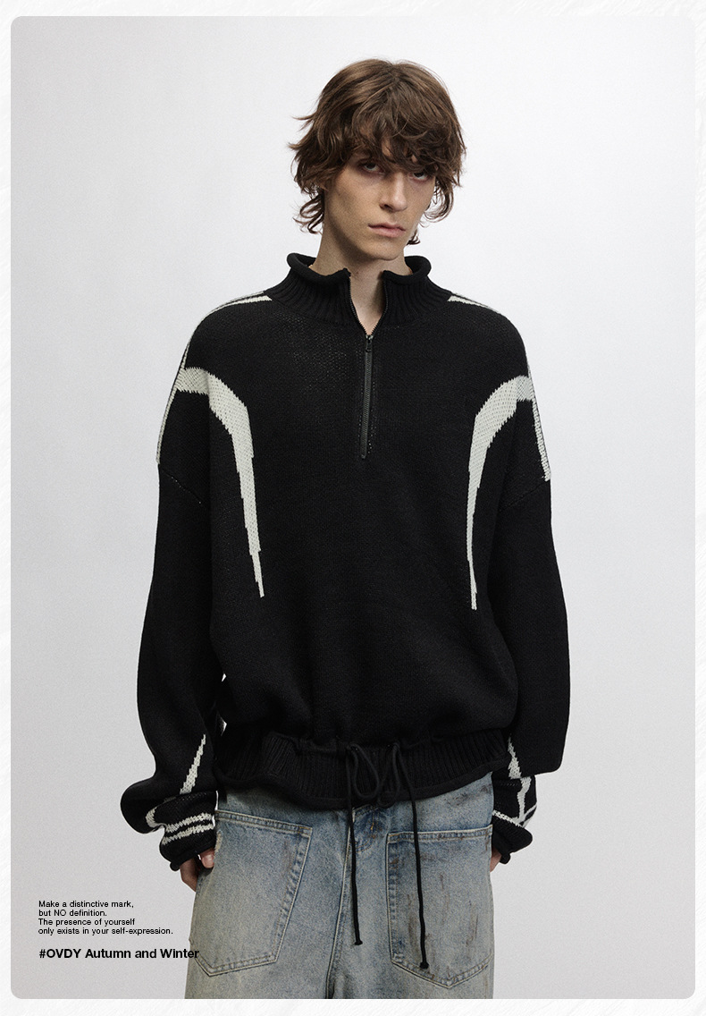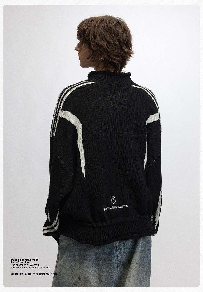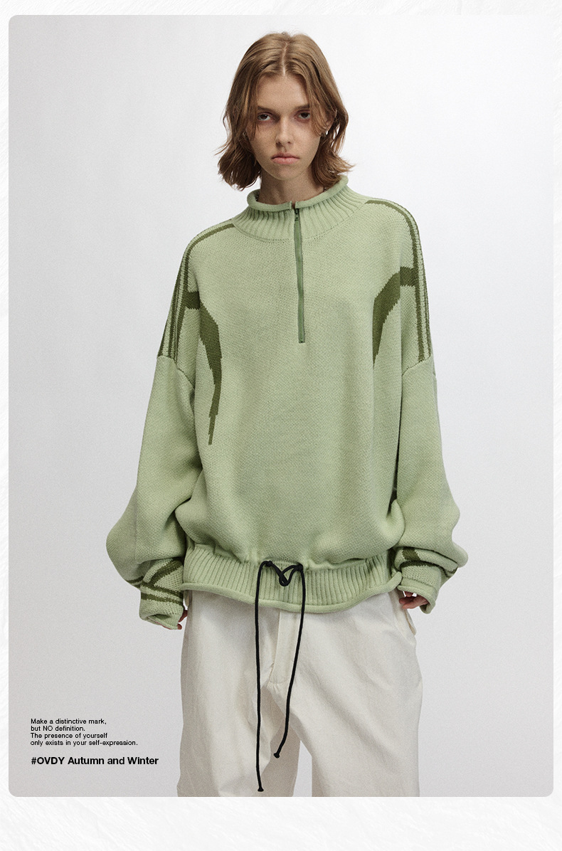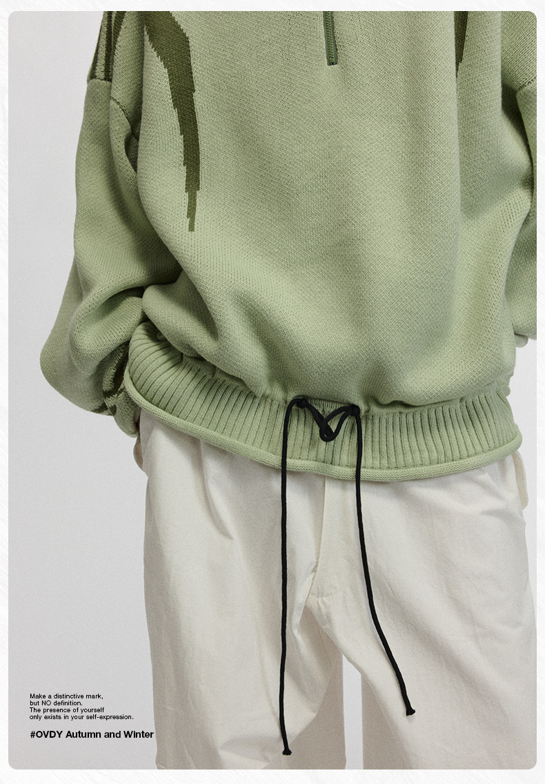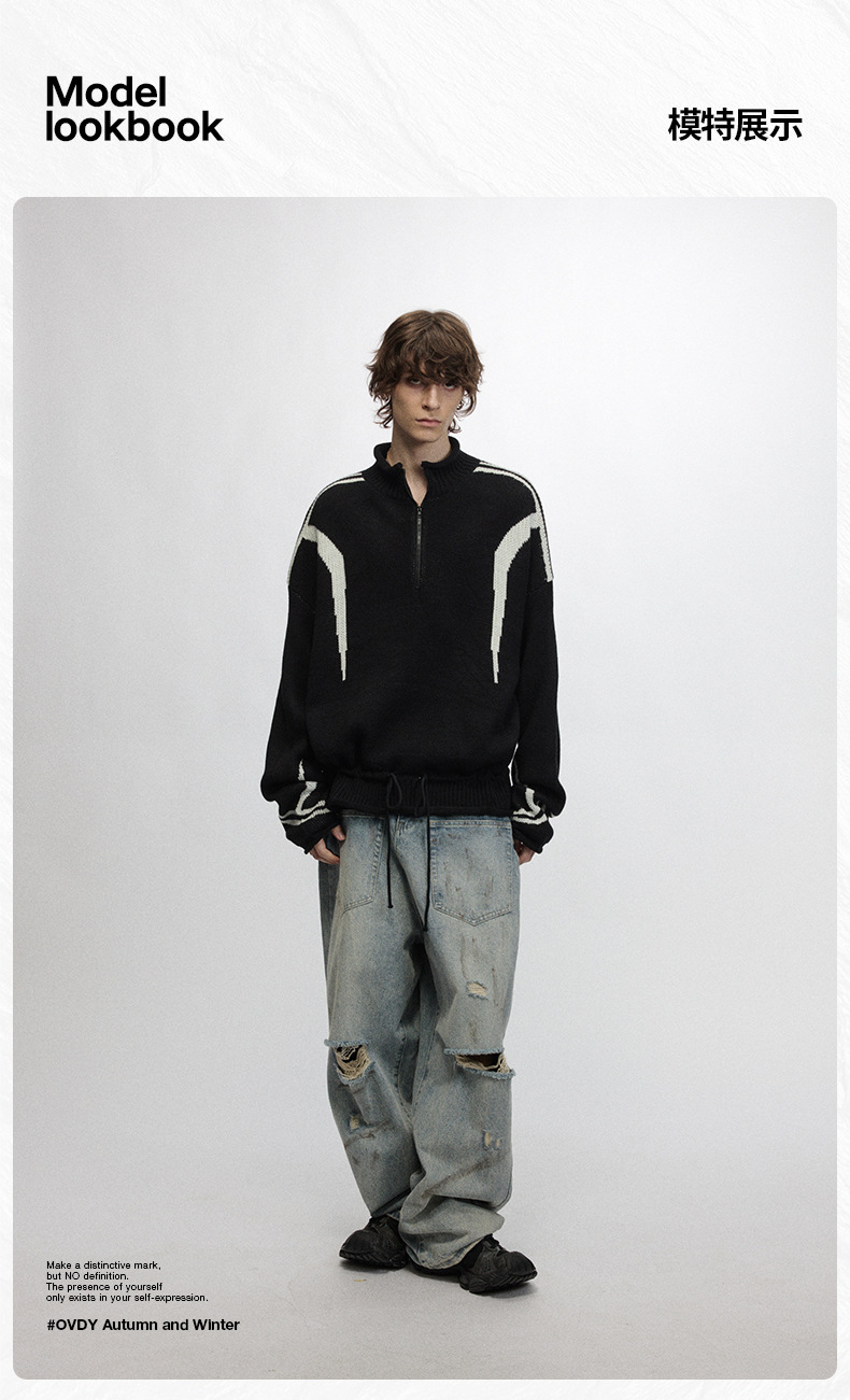 # OVDY 레이지 스타일 텍스처드 솔리드 컬러 스웨터 가을 겨울 신상 스타일리시한 니트웨어 남성용스토어 가기