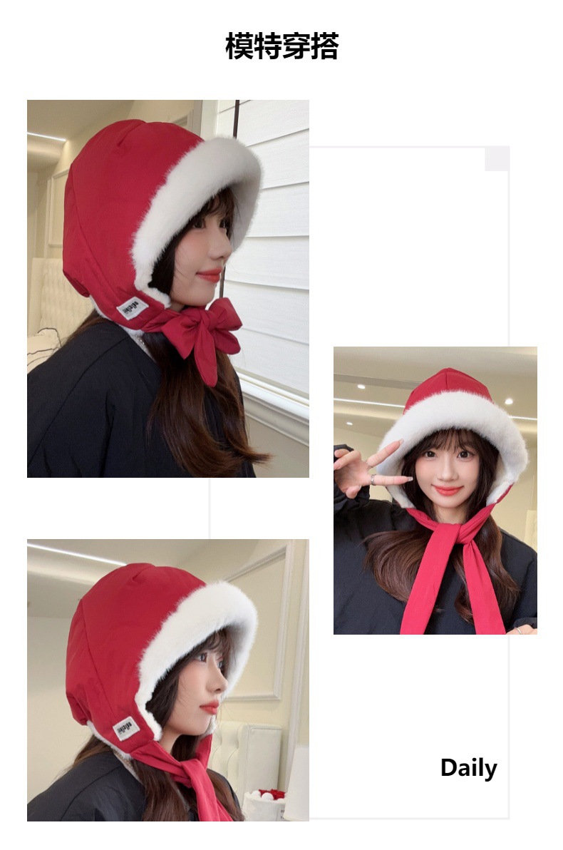 작은 빨간 승마 후드 귀여운 소녀의 겨울 면화 방수 가방 이중 목적 귀 보호 레이 펑 모자 한국 두꺼운 따뜻한 모자스토어 가기