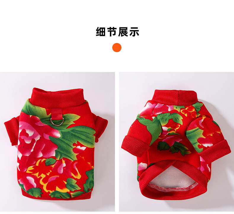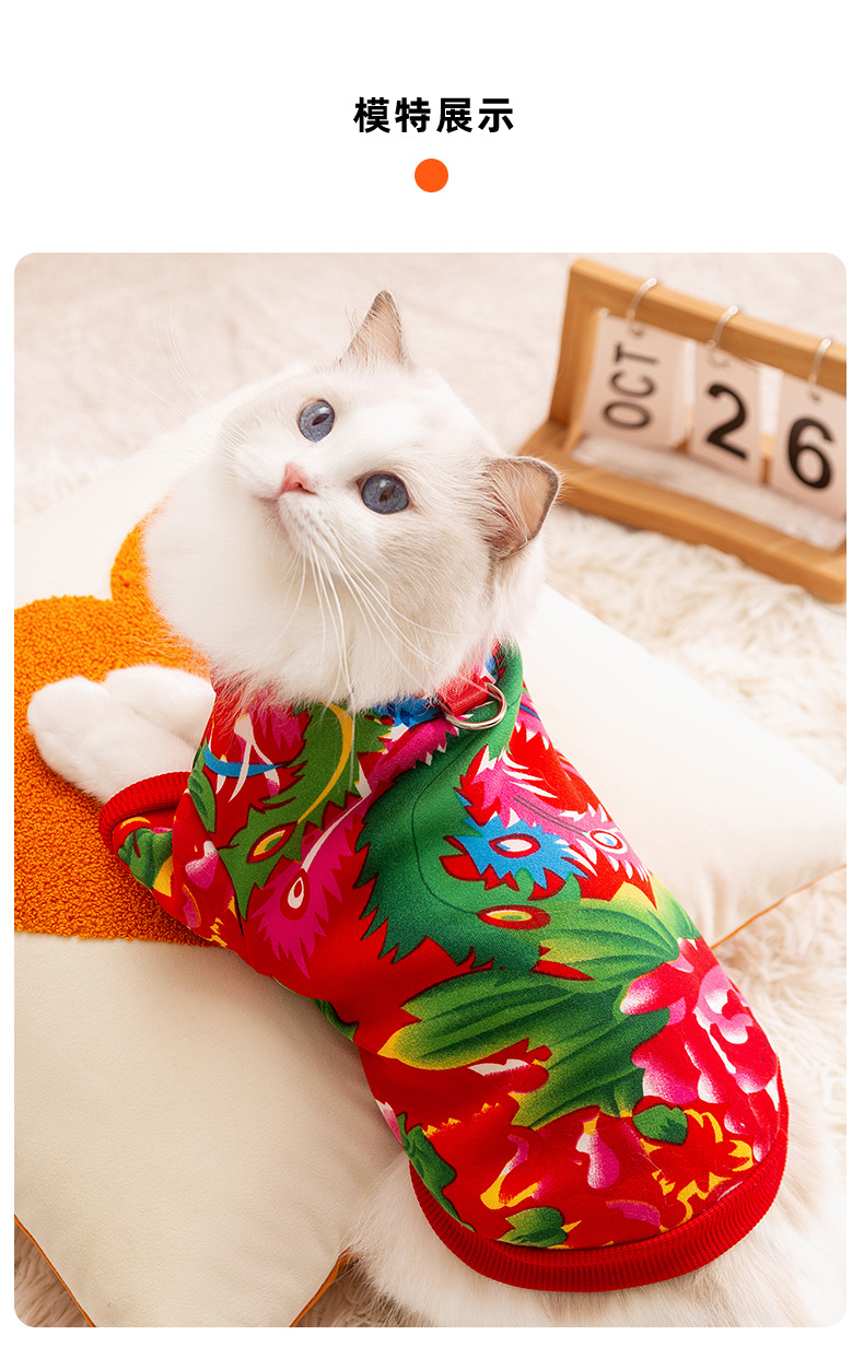 가을과 겨울 동북 꽃 코트 고양이 옷 견인 두 다리 땀 새해 푸른 고양이 새끼 개 신년 옷스토어 가기