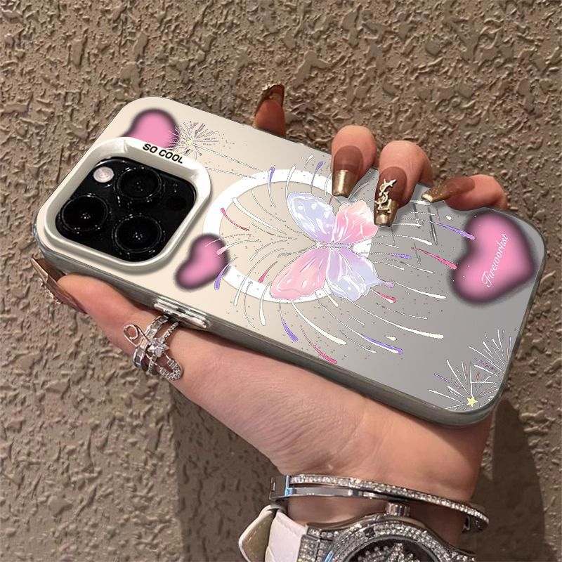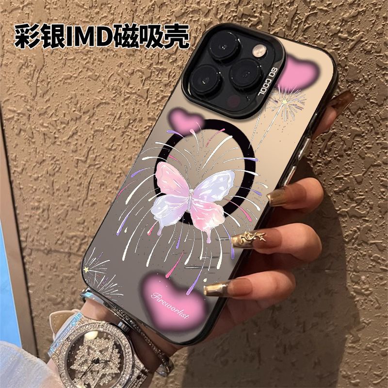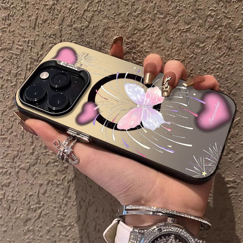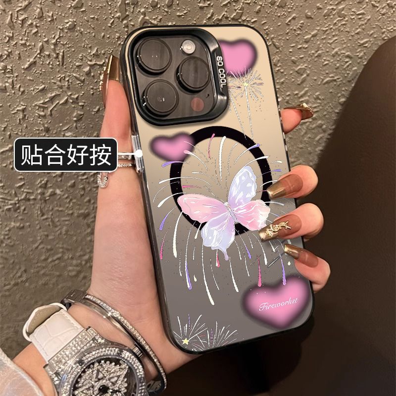 사랑 불꽃 나비 휴대 전화 케이스 애플 16pro iPhone15/14/13 자기 무선 충전 11스토어 가기
