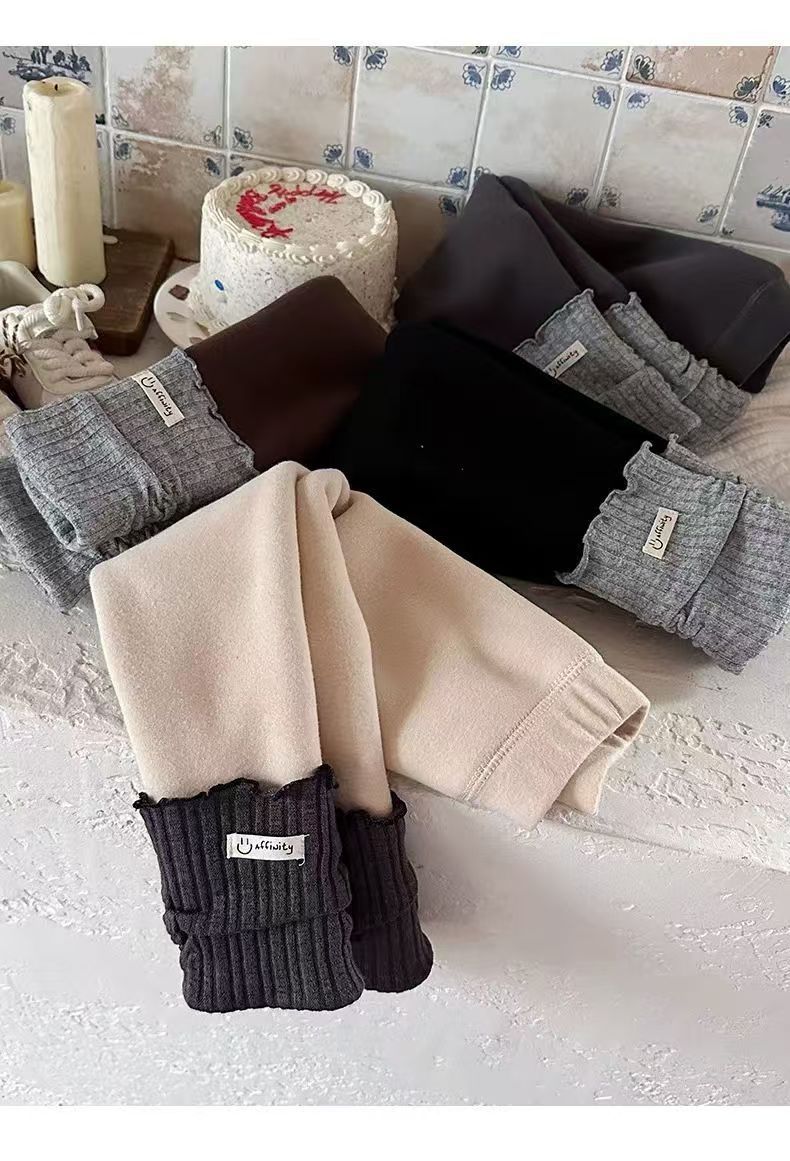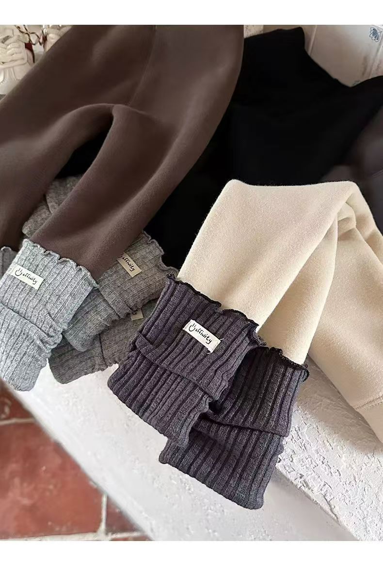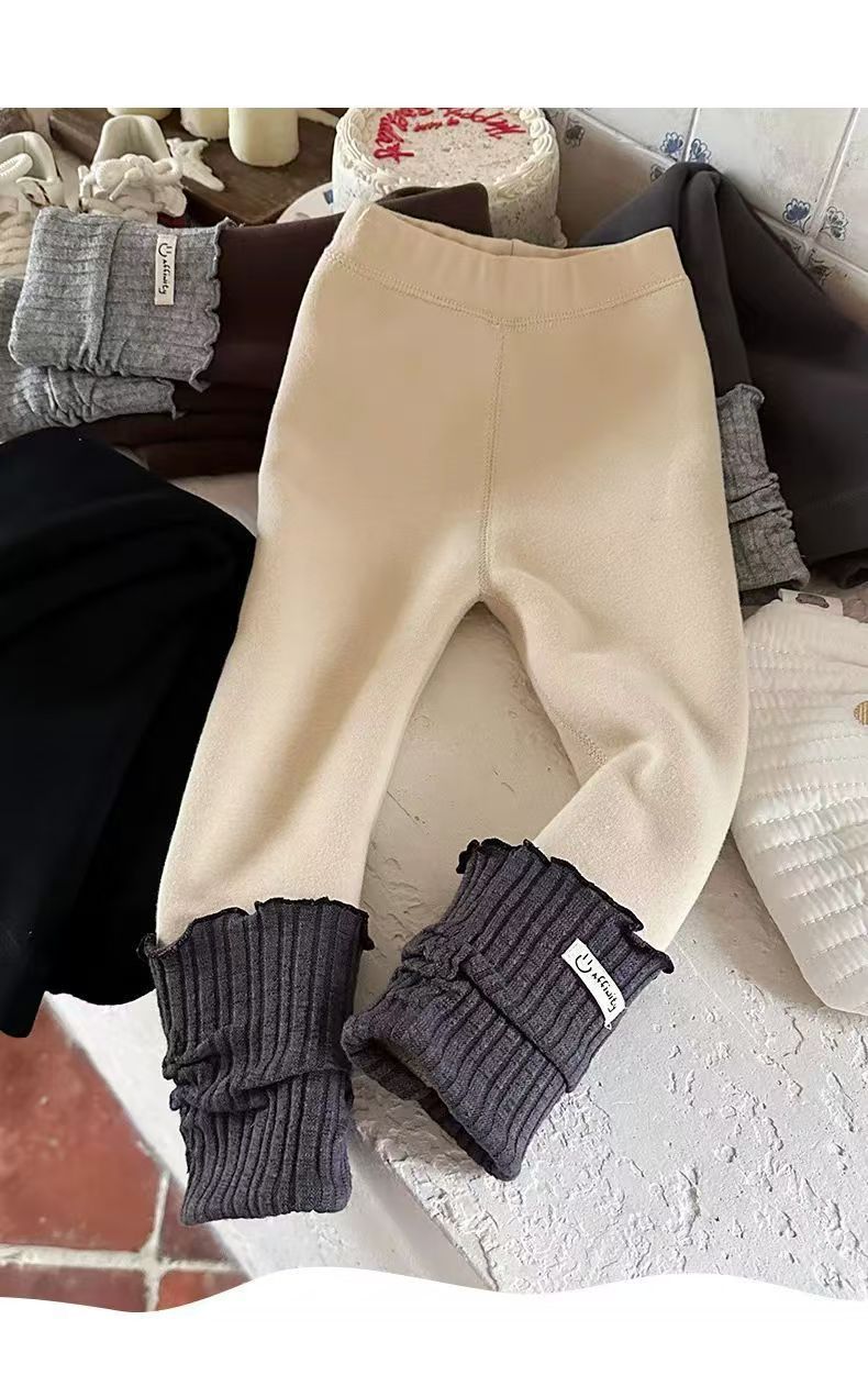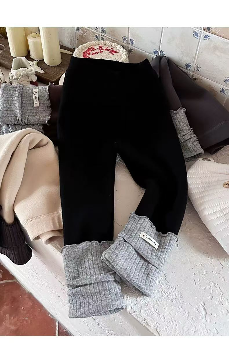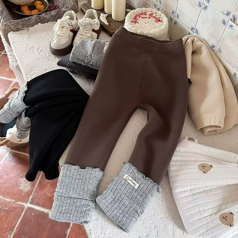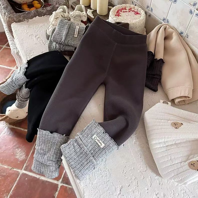 아동복 소녀 2024 가을과 겨울 의류 새로운 두껍게 된 기모 레깅스 더미 모든 매치 아동용 바지스토어 가기