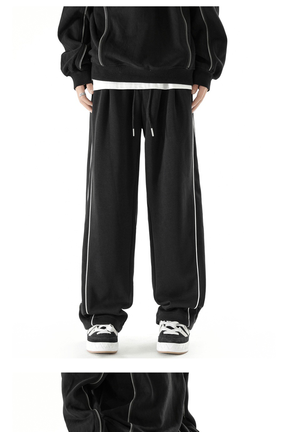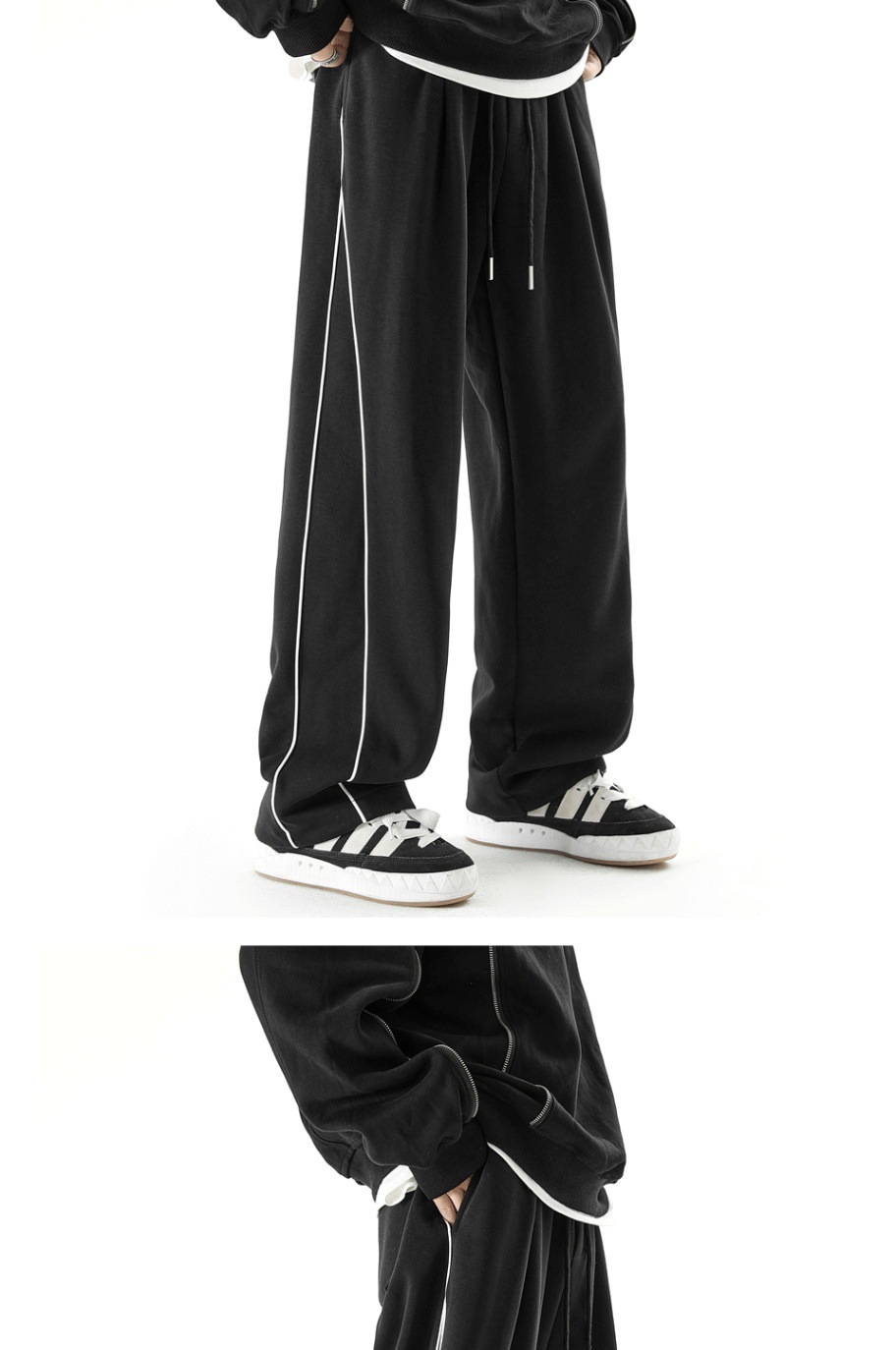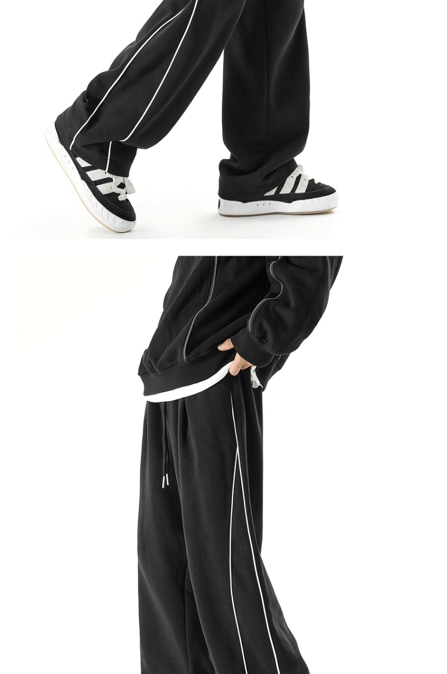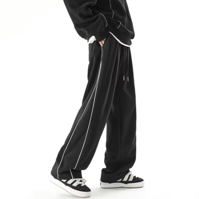 미국 운동복 남자 가을/겨울 2024 새로운 벨벳 바지 스포츠 바지 플러스 사이즈 느슨한 스트레이트 바지 캐주얼 바지스토어 가기