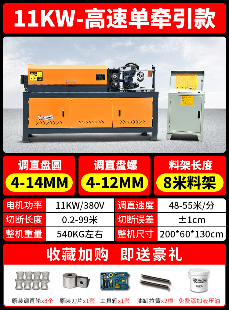 • [11KW 고속 단일 견인 장치 8m 재료 프레임 포함] 무료 유압 오일 및 선물
