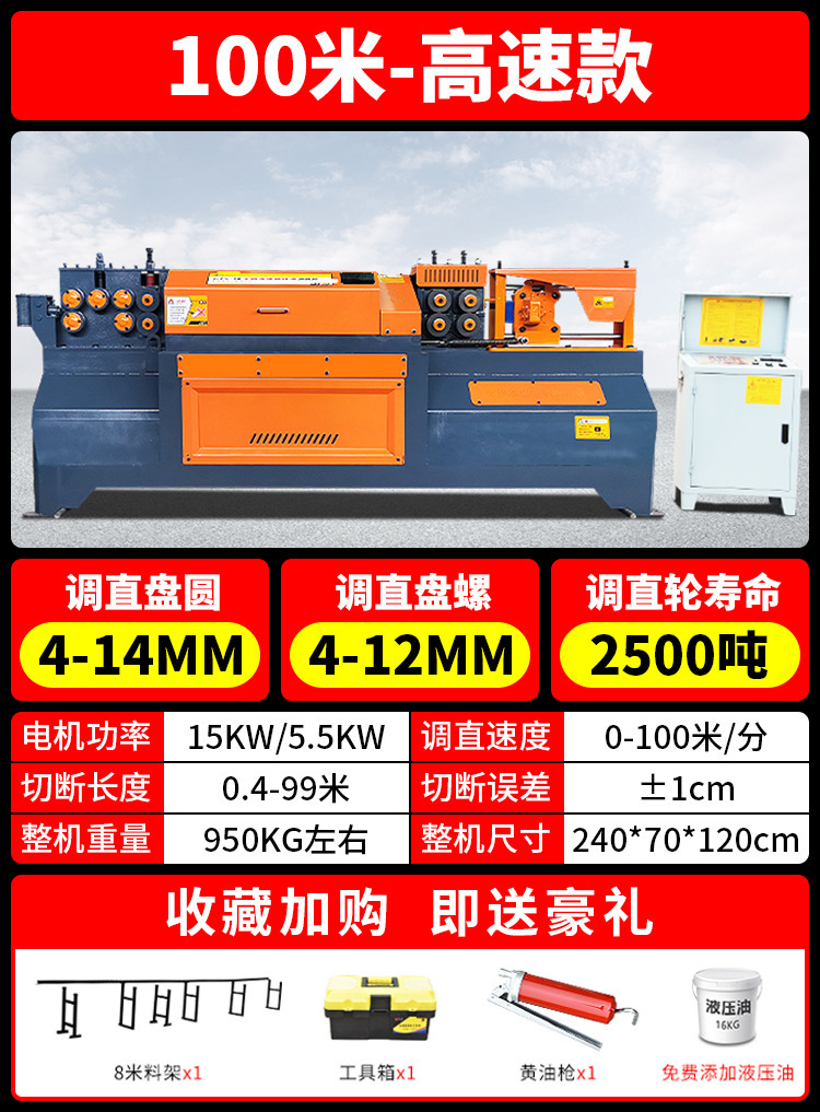 • [9KW 고속 단일 견인 장치 8m 재료 랙 포함] - 무료 유압 오일 및 선물