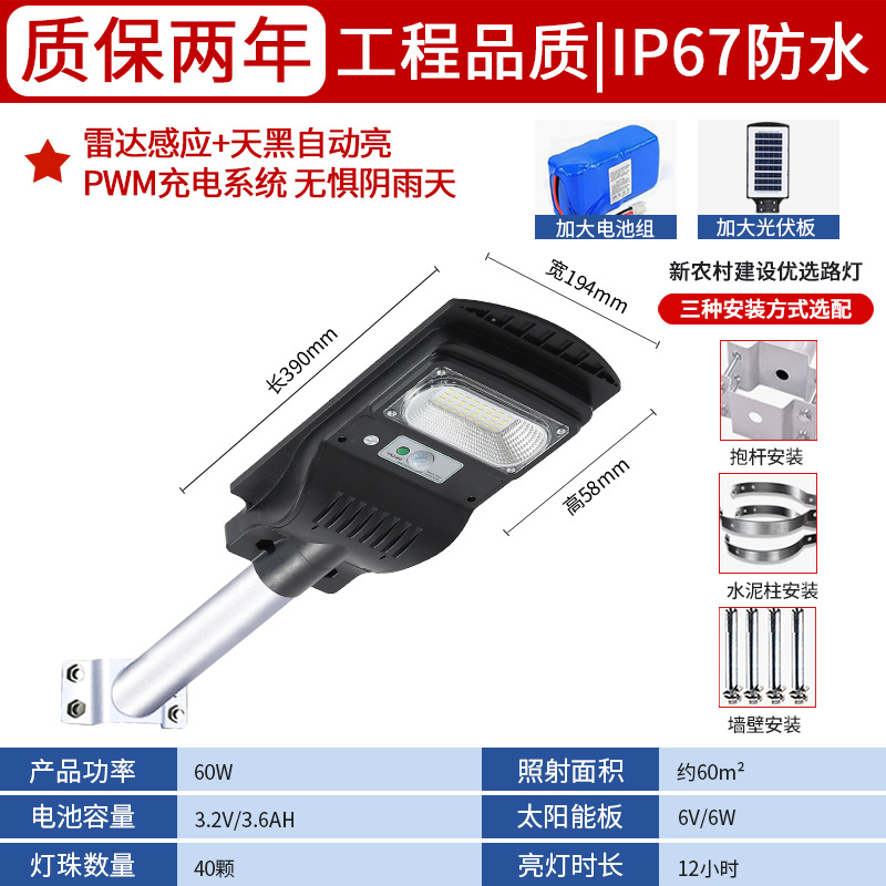 태양 빛 가로등 야외 정원 빛 가정 방수 농촌 야드 야외 슈퍼 밝은 조명 유도 가로등