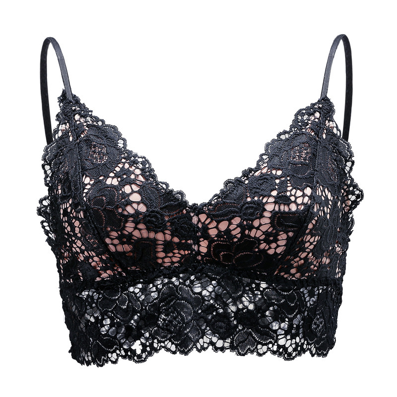여름 프랑스 속옷 소녀의 초박형 브라 렛 레이스 스틸 링 멜빵 포장 가슴 삼각형 컵 브래지어없이 아름다운 백스토어 가기