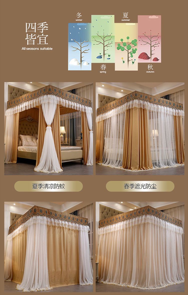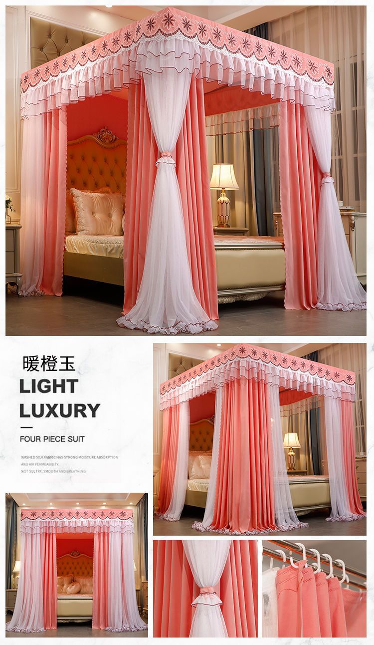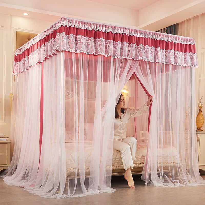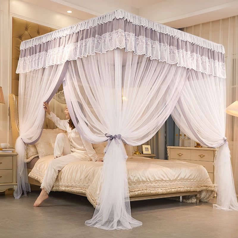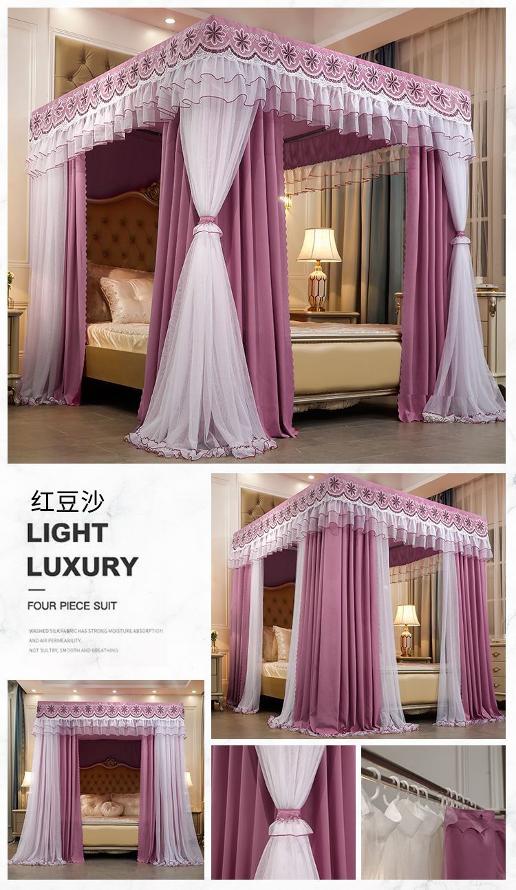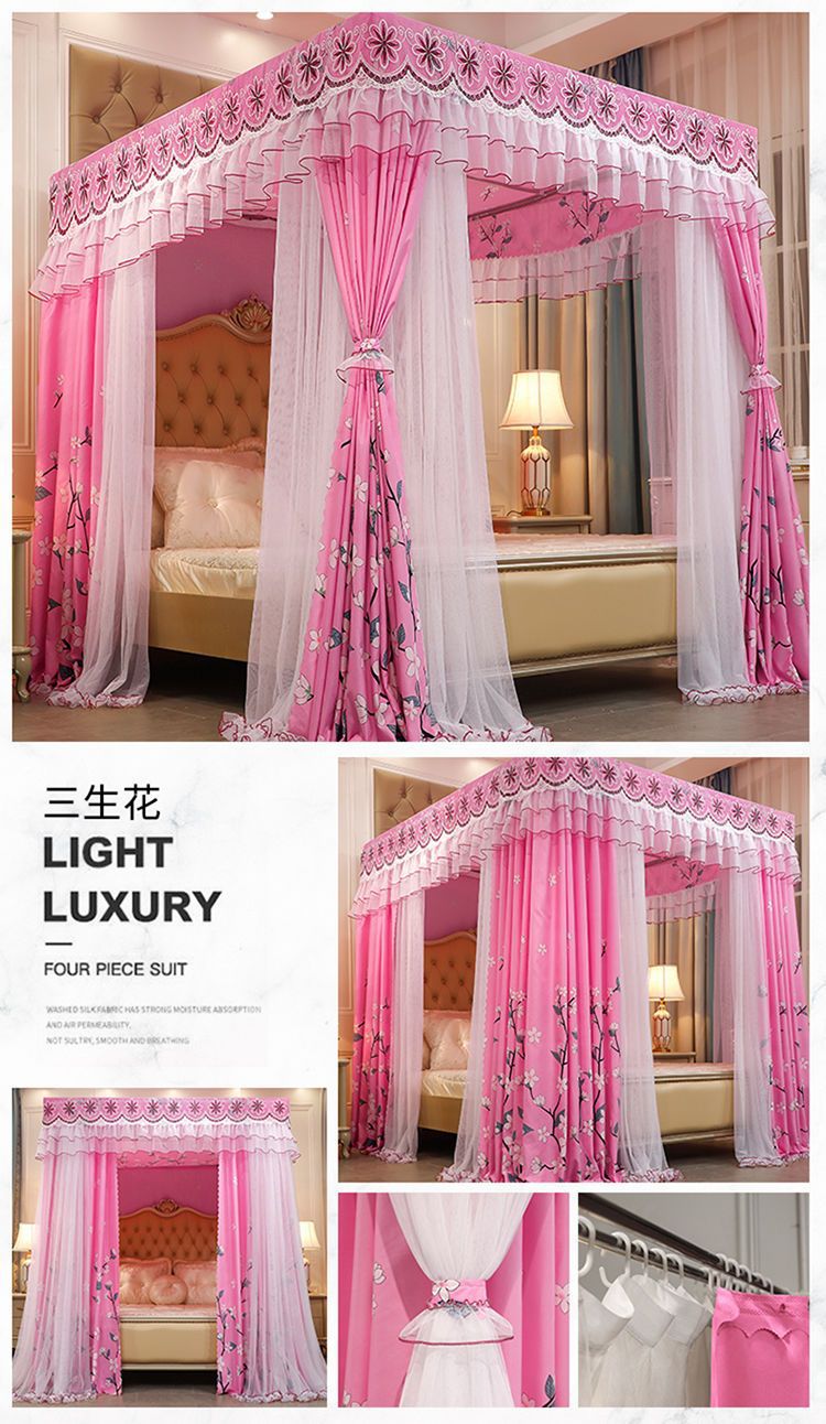 새로운 모기장 음영 침대 커튼 공주 윈드 베드 맨틀 3 도어 음영 천 먼지 탑 모기장 브래킷 로드 Weidong스토어 가기