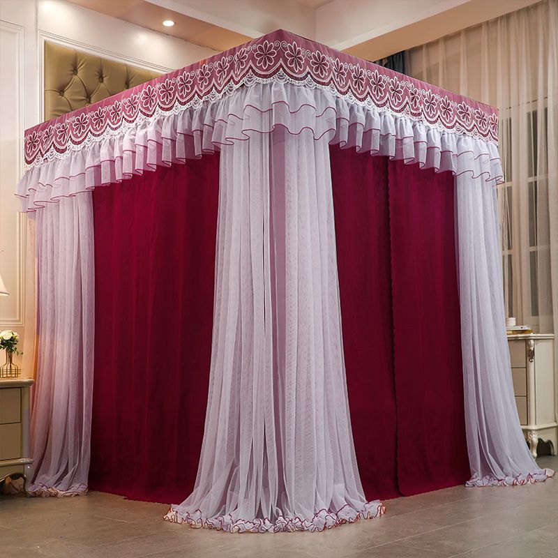 • 루비 레드 [침대 커튼 + 거즈 + 상판 + 이중봉 스틸 브라켓]♢