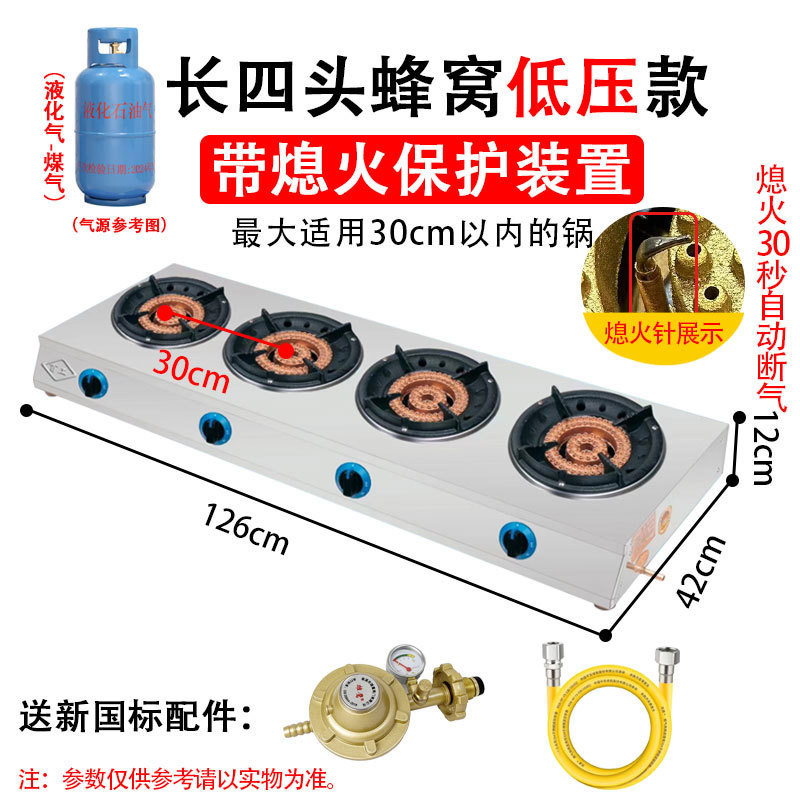 • 화염정지 보호 기능이 있는 긴 4개 헤드 벌집형 모델 "저압" 액화 가스/가스 및 무료 액세서리