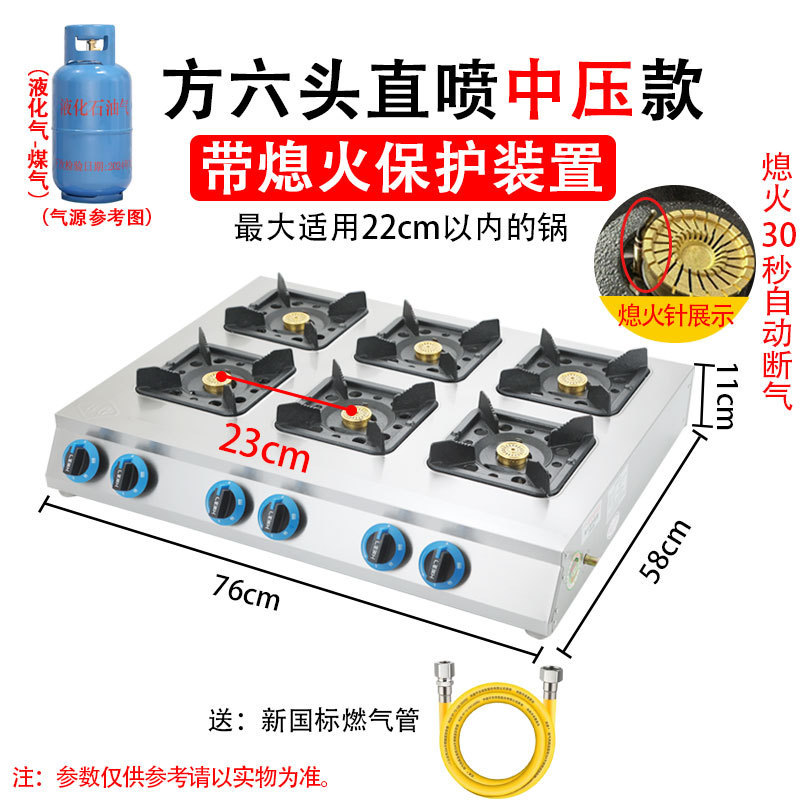 고압 및 중간 압력 쿠커 스토브 상업용 액화 가스 치열한 스토브 다공성 가스 스토브 멀티 헤드 가스 스토브 4 6 눈 캐서롤 스토브스토어 가기