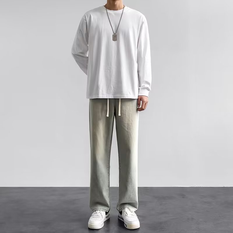 청바지 남자의 봄과 가을 2023 새로운 느슨한 하이 스트리트 스트레이트 넓은 다리 바지 여름 캐주얼 긴 바지 남자