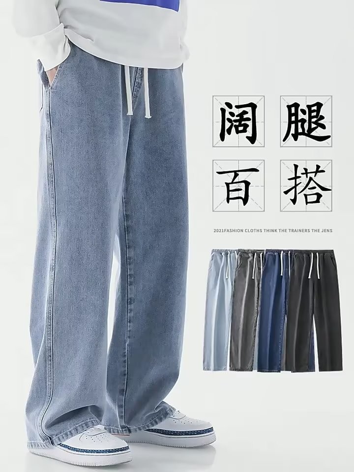 청바지 남자의 봄과 가을 2023 새로운 느슨한 하이 스트리트 스트레이트 넓은 다리 바지 여름 캐주얼 긴 바지 남자스토어 가기