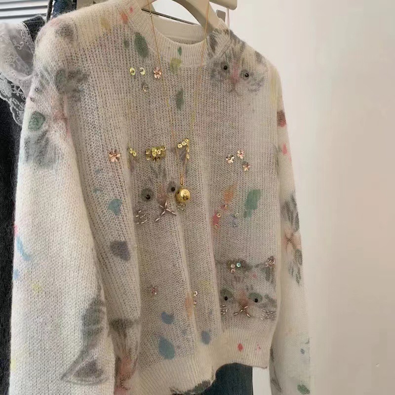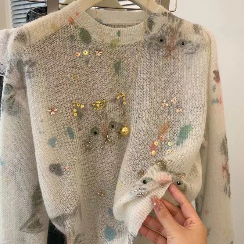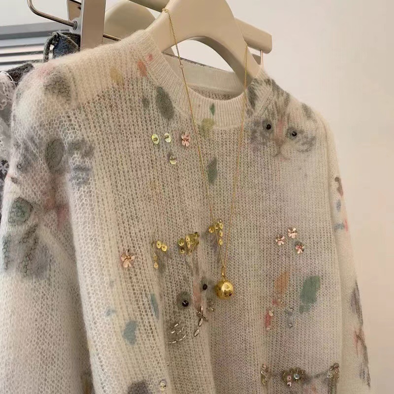 고급 슈퍼 잘 생긴 세련된 아름다운 섬세한 부드러운 탑 헤비 듀티 비즈 긴팔 스웨터 여성용 가을과 겨울스토어 가기