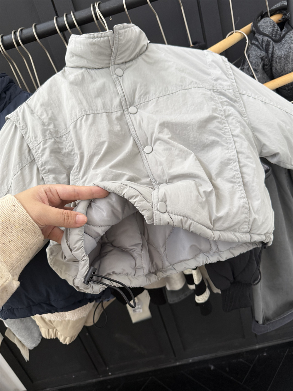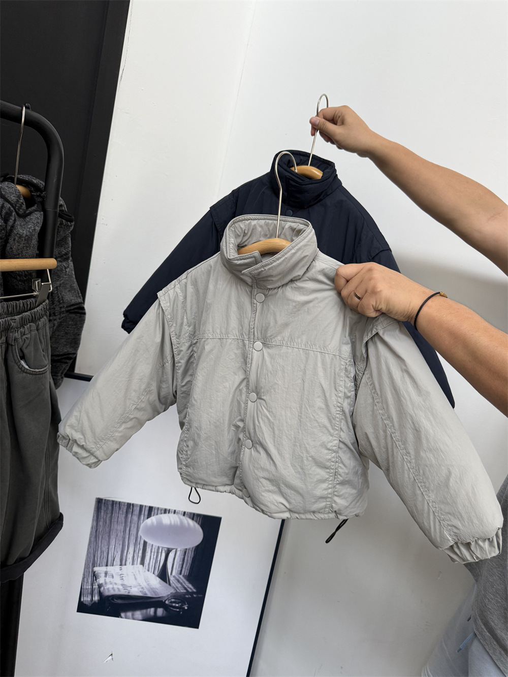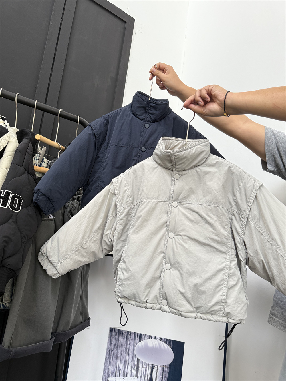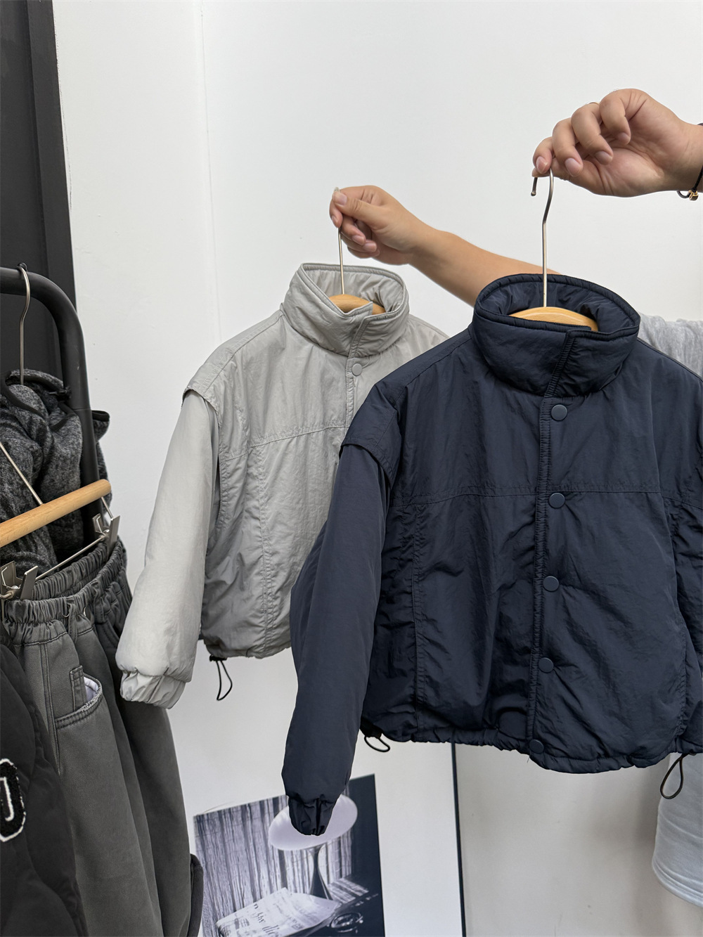两个颜色都很好看,里面搭配帽衫或者高领打底很洋气