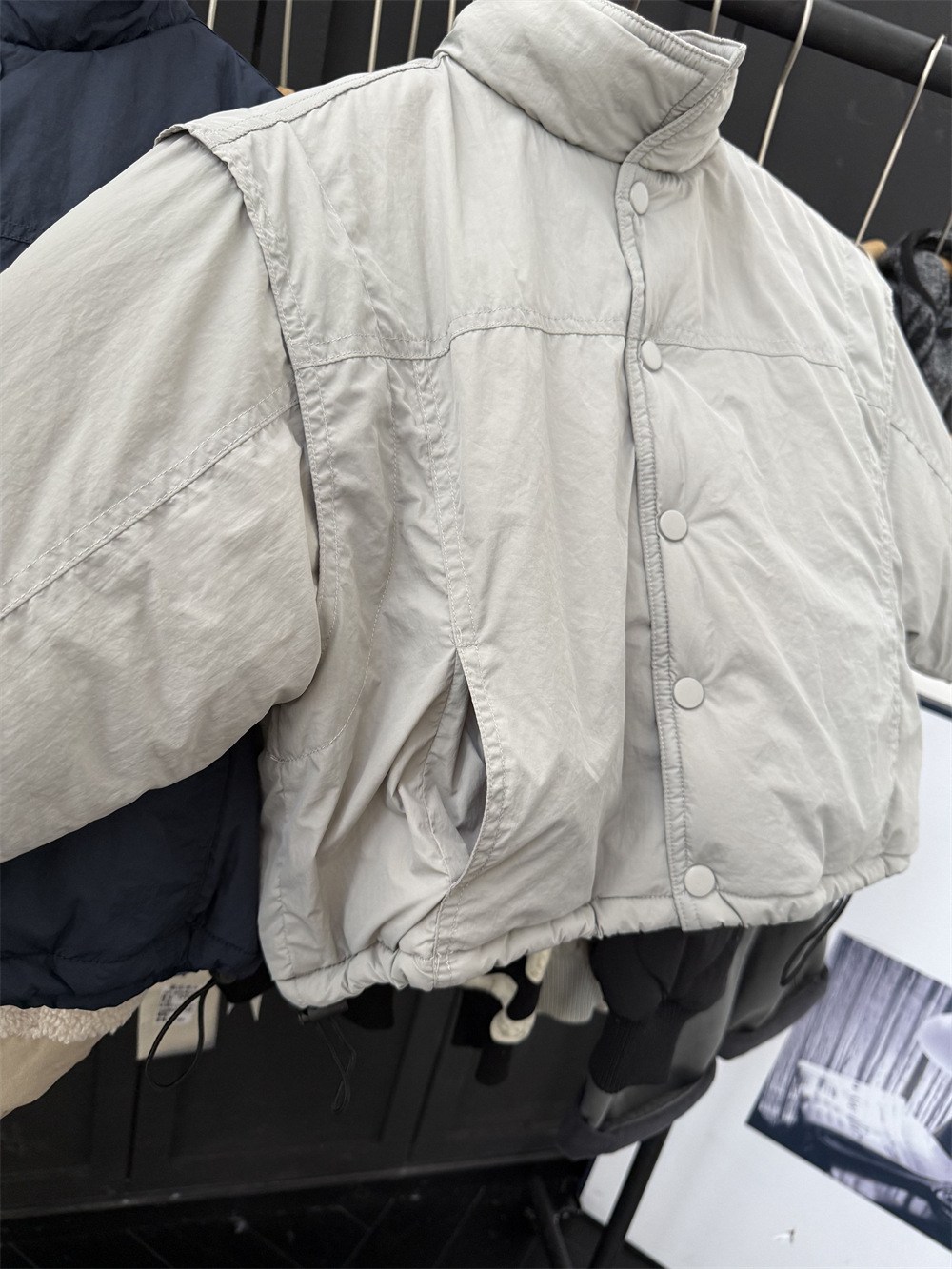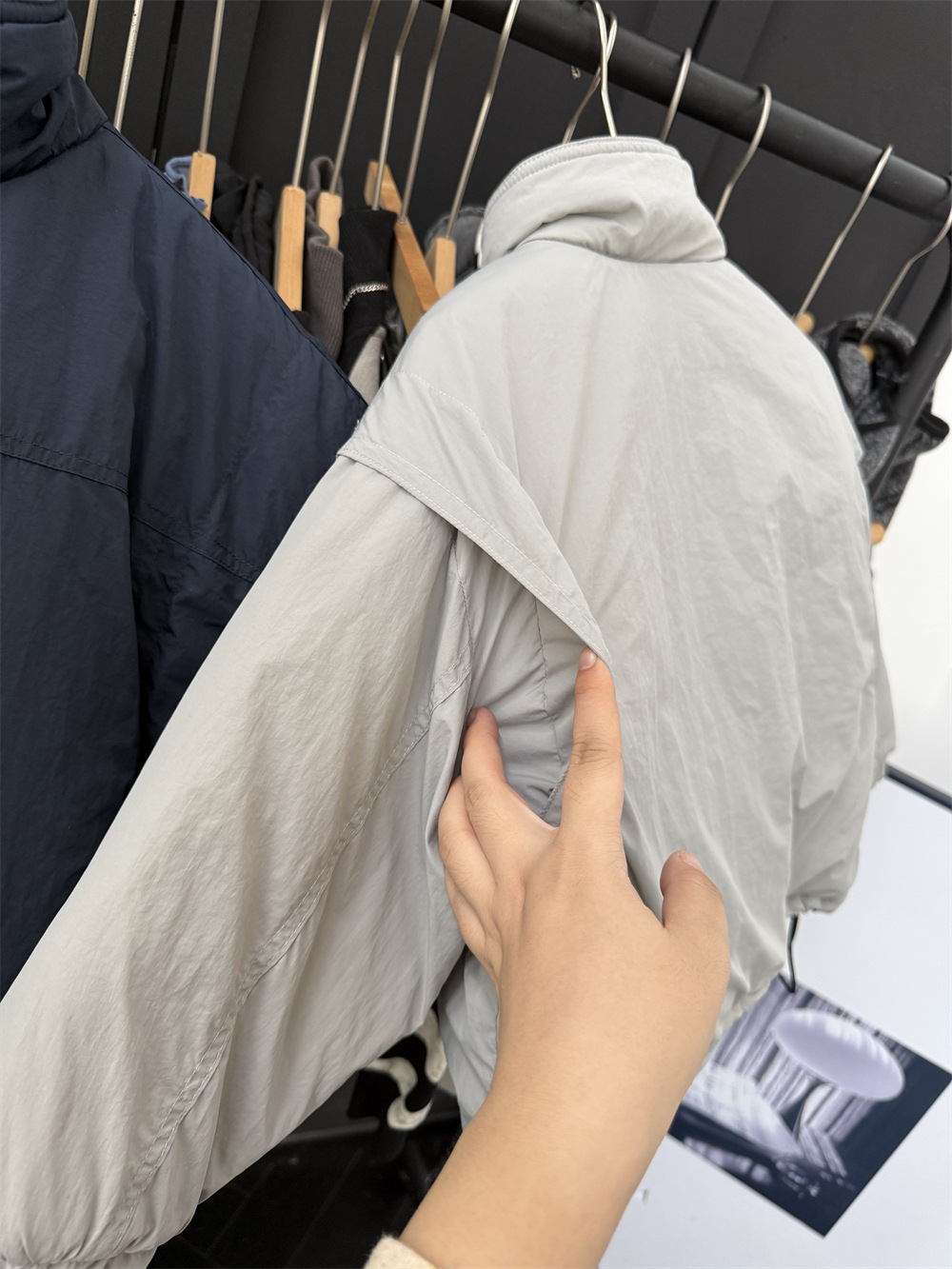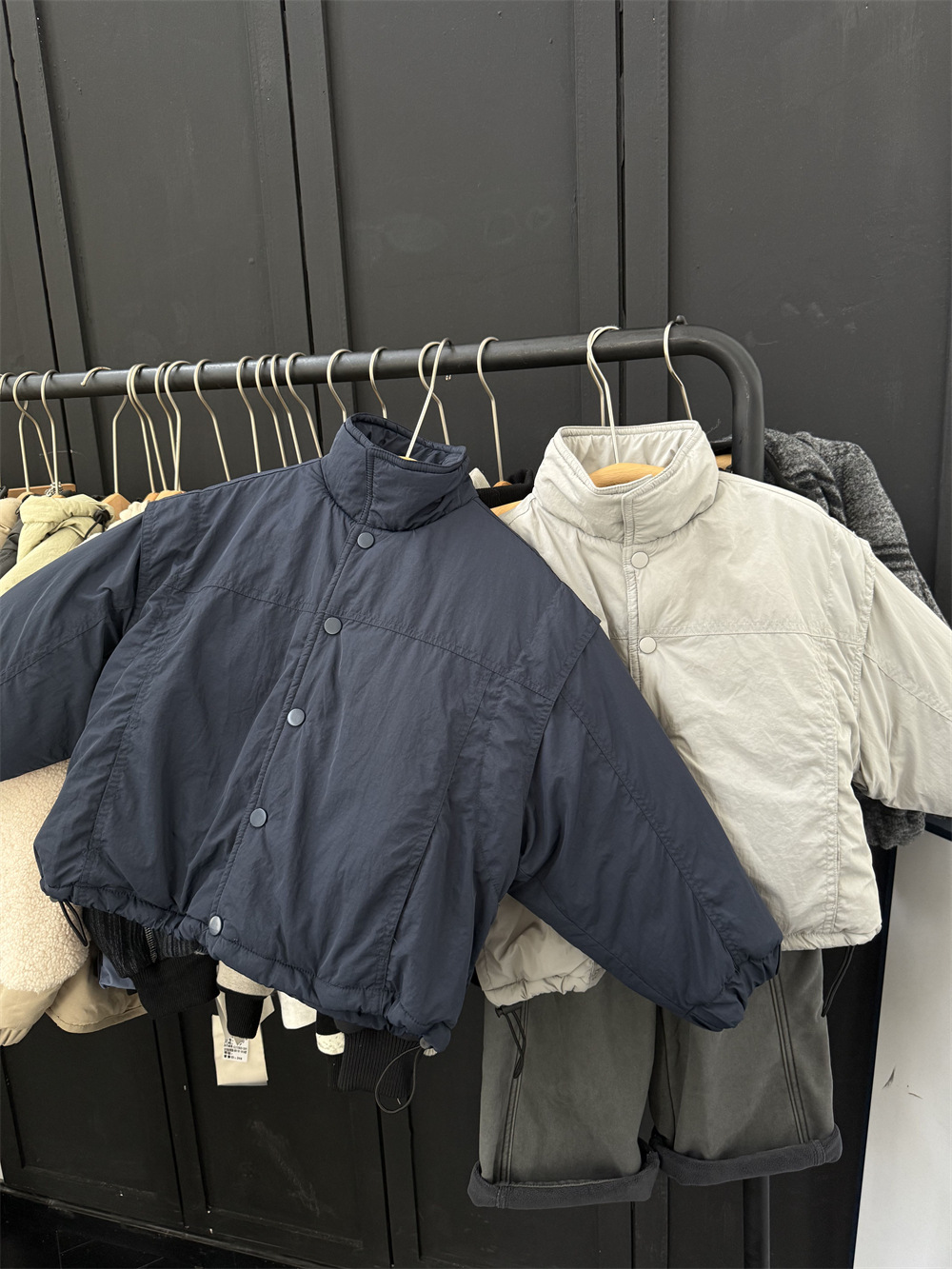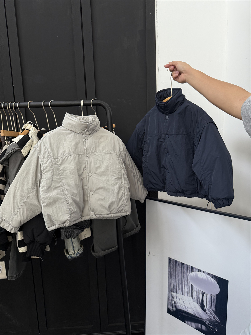两个颜色都很好看,里面搭配帽衫或者高领打底很洋气