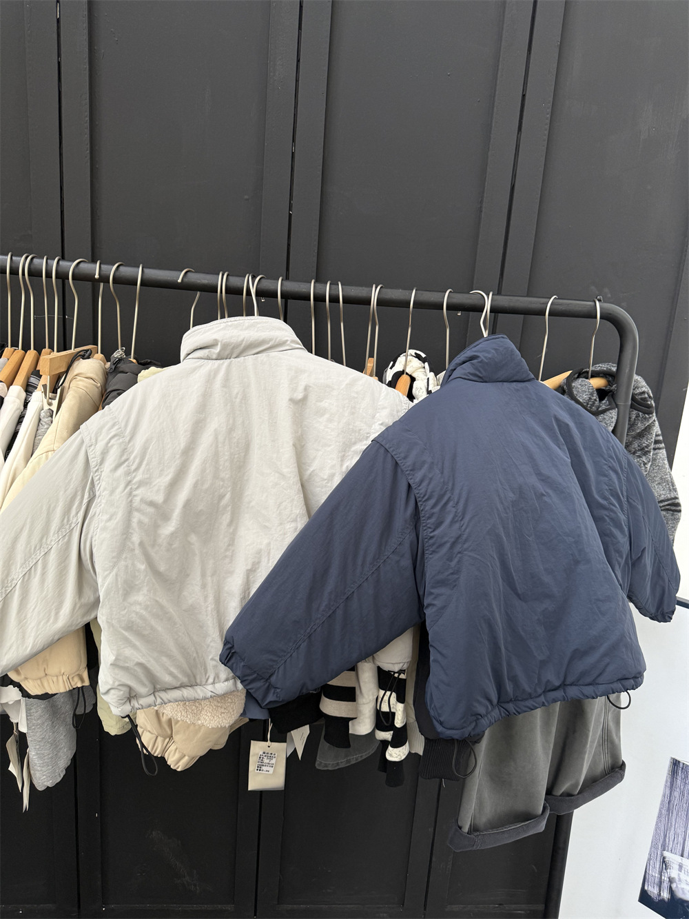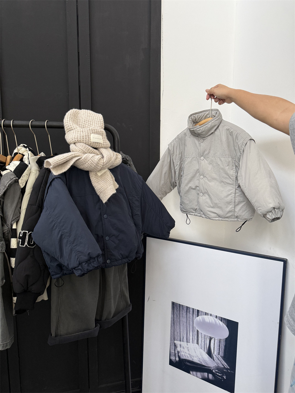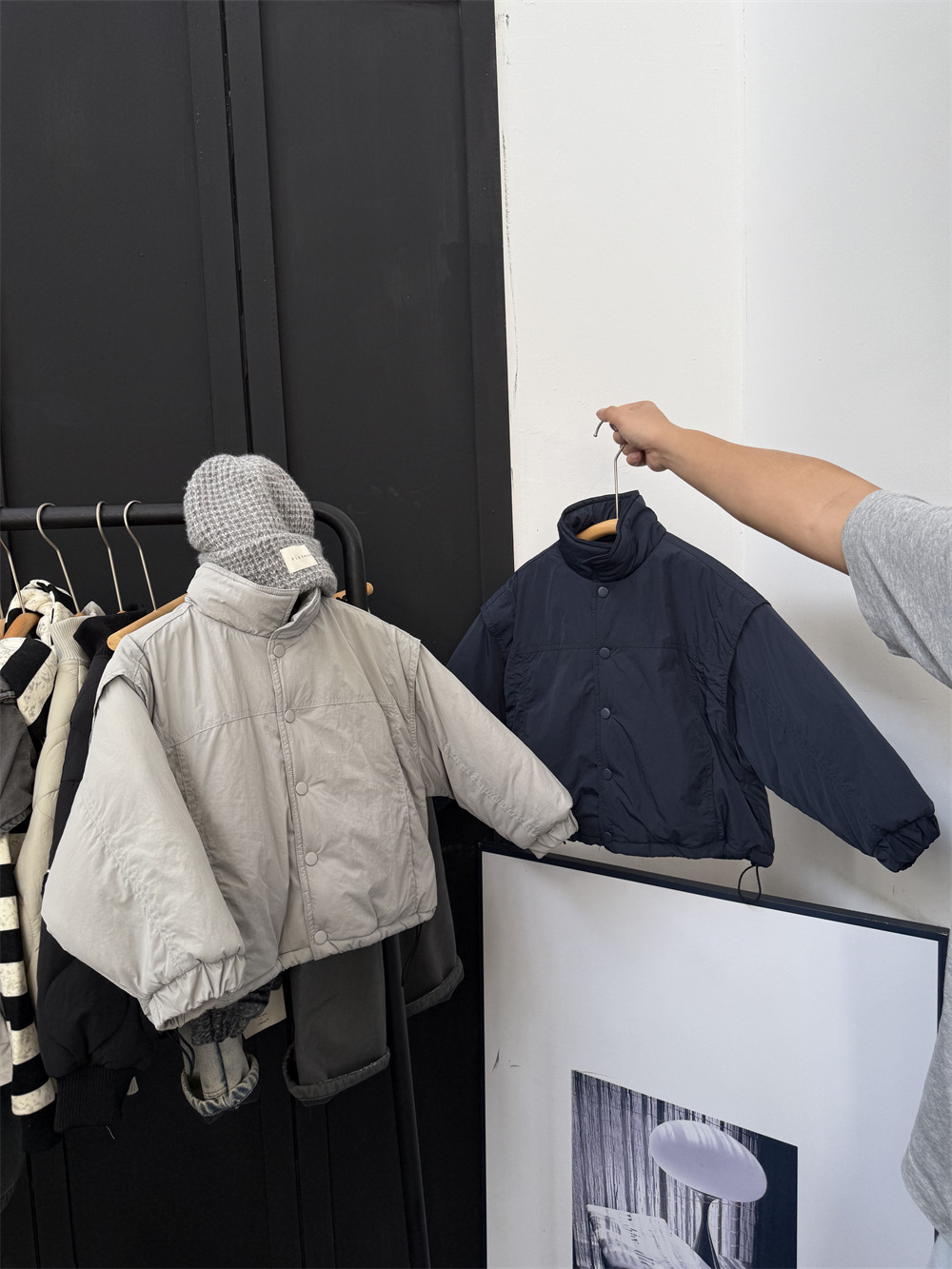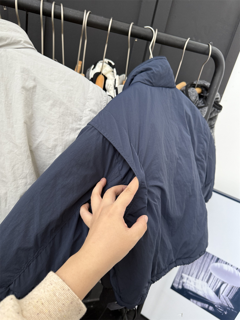 两个颜色都很好看,里面搭配帽衫或者高领打底很洋气