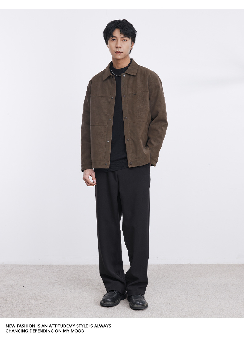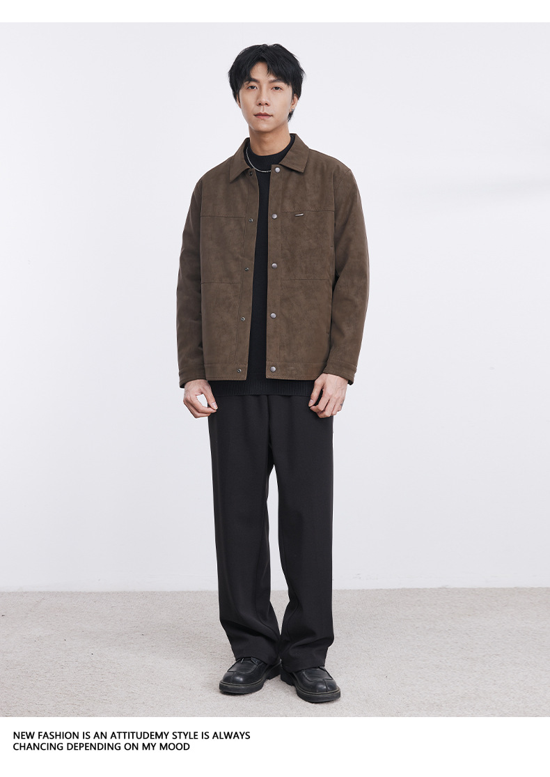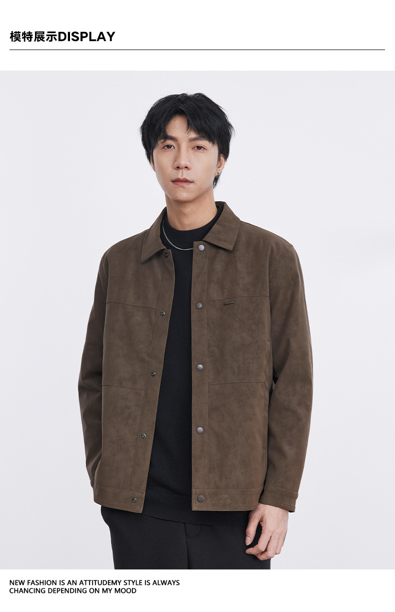 남자의 가벼운 성숙한 스타일 짧은 가죽 자켓 남자의 가을과 겨울 기모 두꺼운 캐주얼 옷깃 PU 가죽 자켓