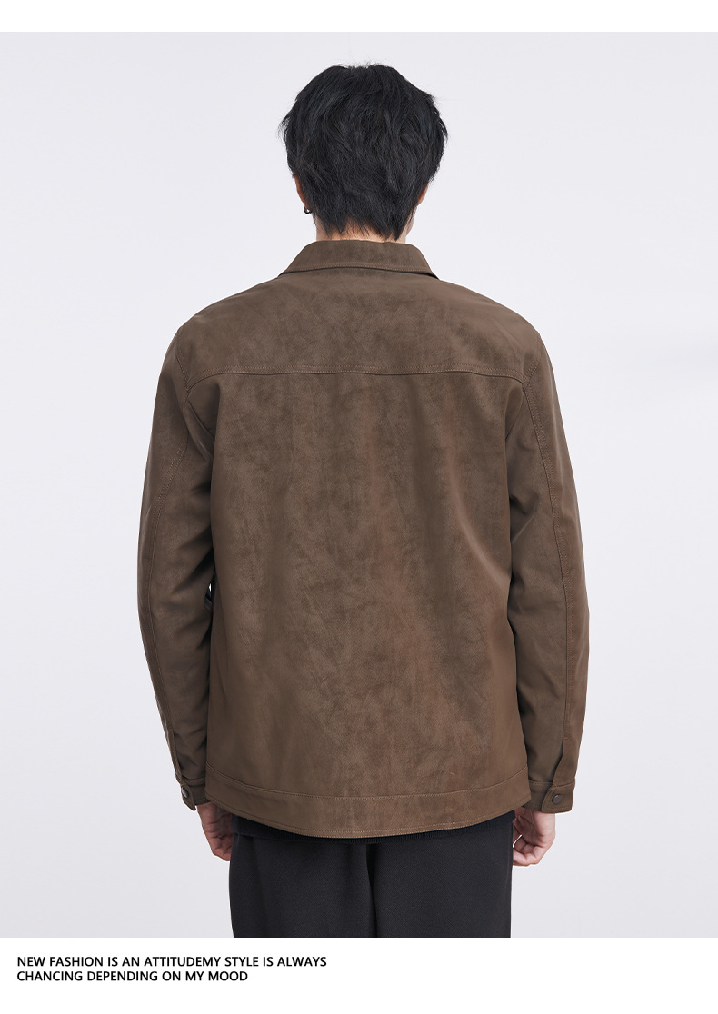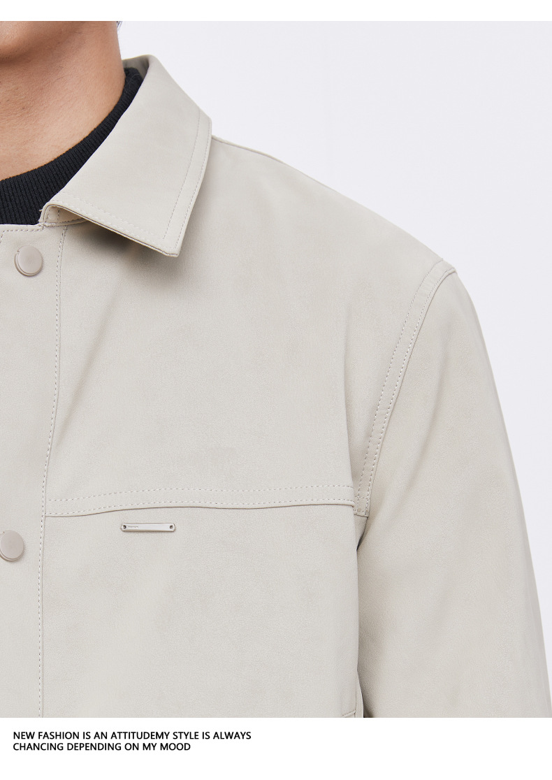 남자의 가벼운 성숙한 스타일 짧은 가죽 자켓 남자의 가을과 겨울 기모 두꺼운 캐주얼 옷깃 PU 가죽 자켓스토어 가기