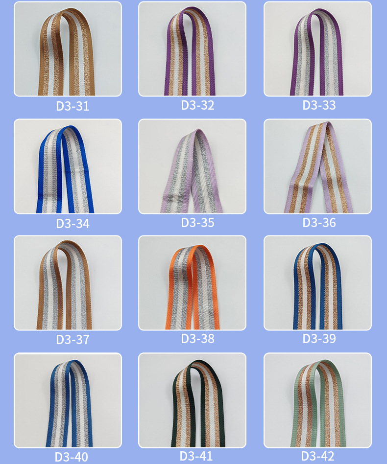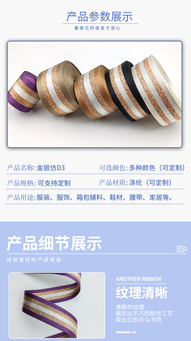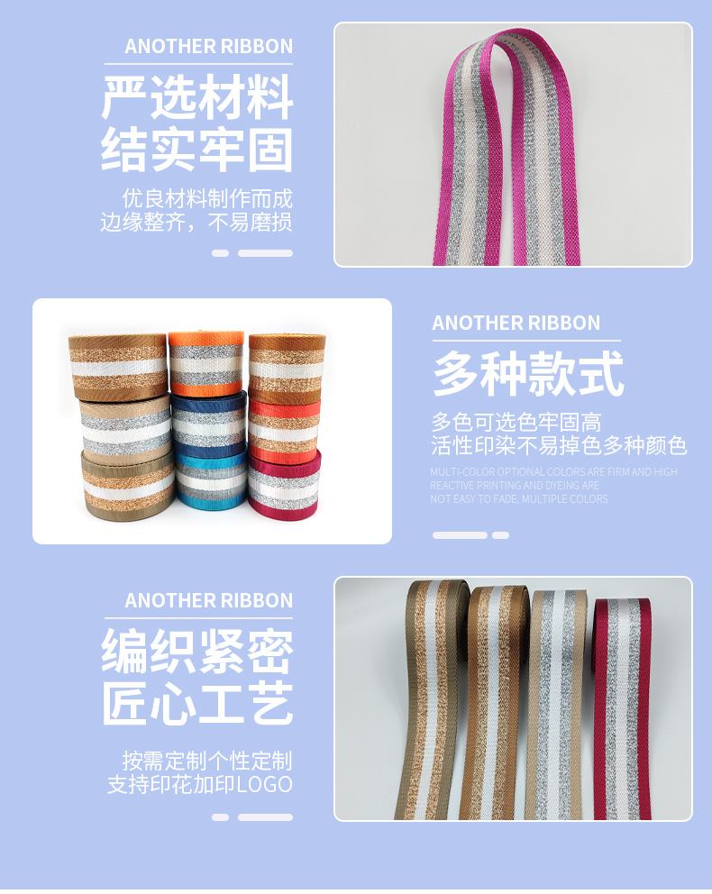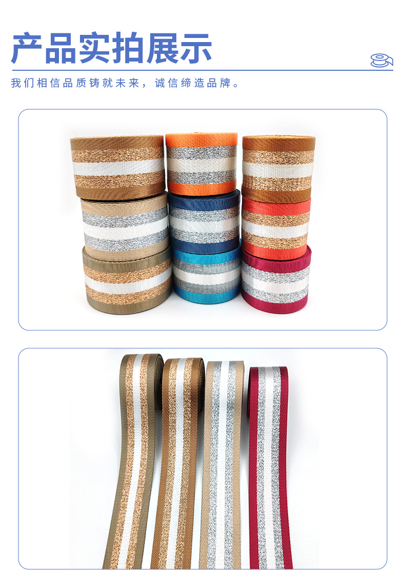 5cm 자카드 직조 리본, 금은색 모조 폴리에스터 리본, 가방, 자동차 안전벨트, 가방 어깨끈, 부자재 등 맞춤 제작 가능스토어 가기