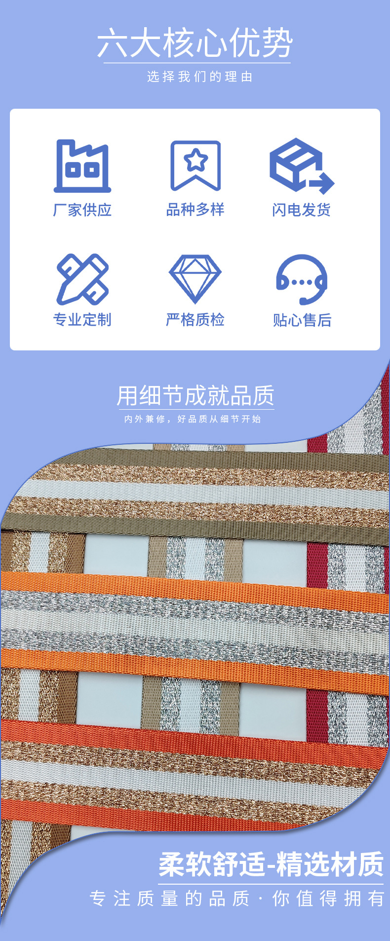 5cm 자카드 직조 리본, 금은색 모조 폴리에스터 리본, 가방, 자동차 안전벨트, 가방 어깨끈, 부자재 등 맞춤 제작 가능