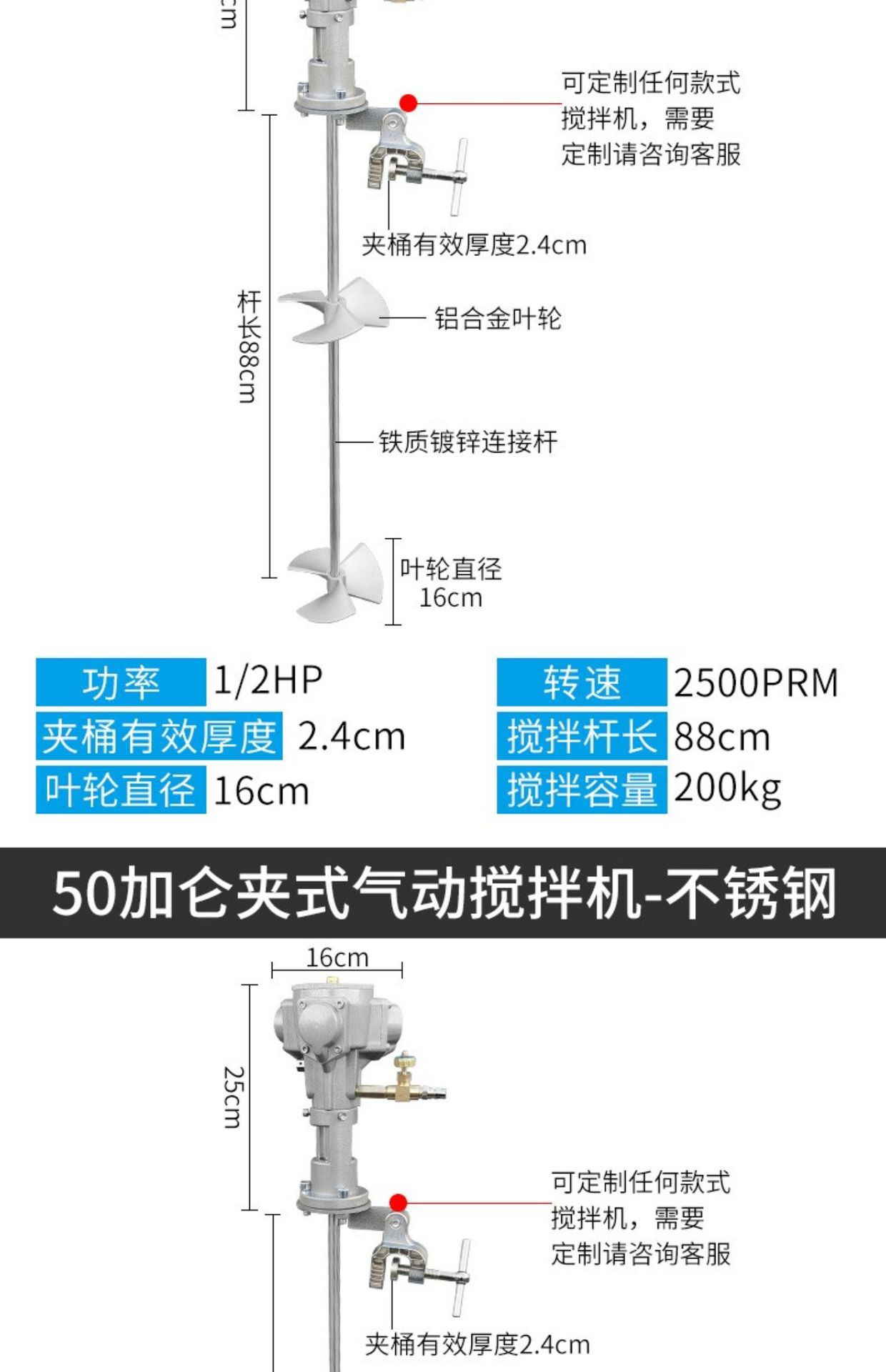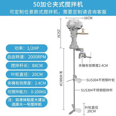 공압 믹서 페인트 플레이트 클램프 산업 톤 배럴 유형 고출력 오일 배럴 갤런 화학 페인트 수평 믹서 50