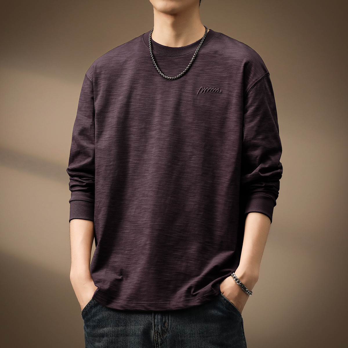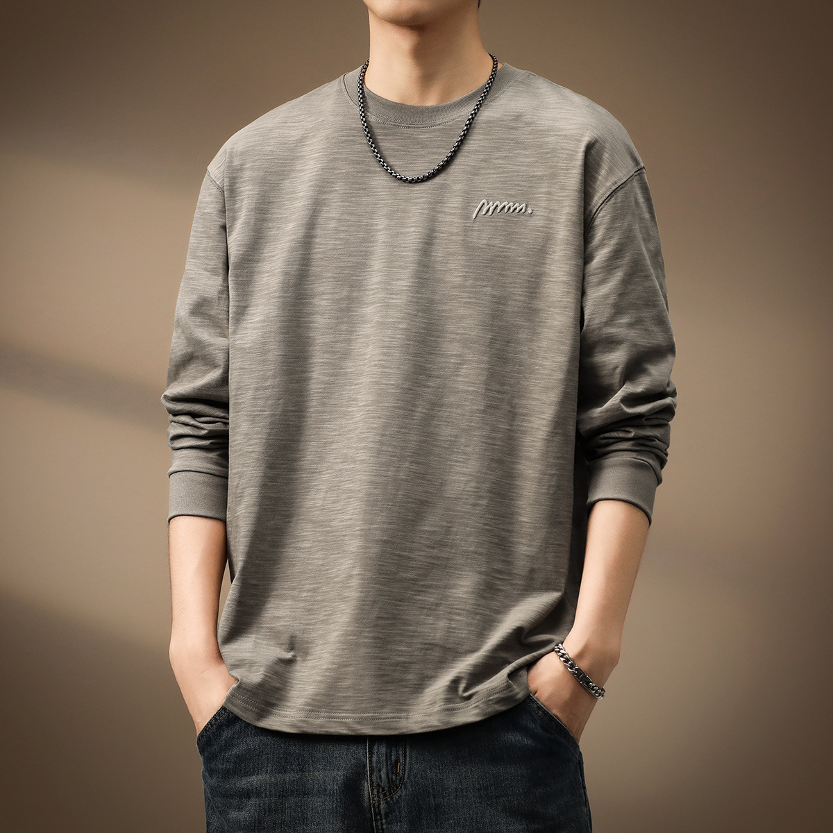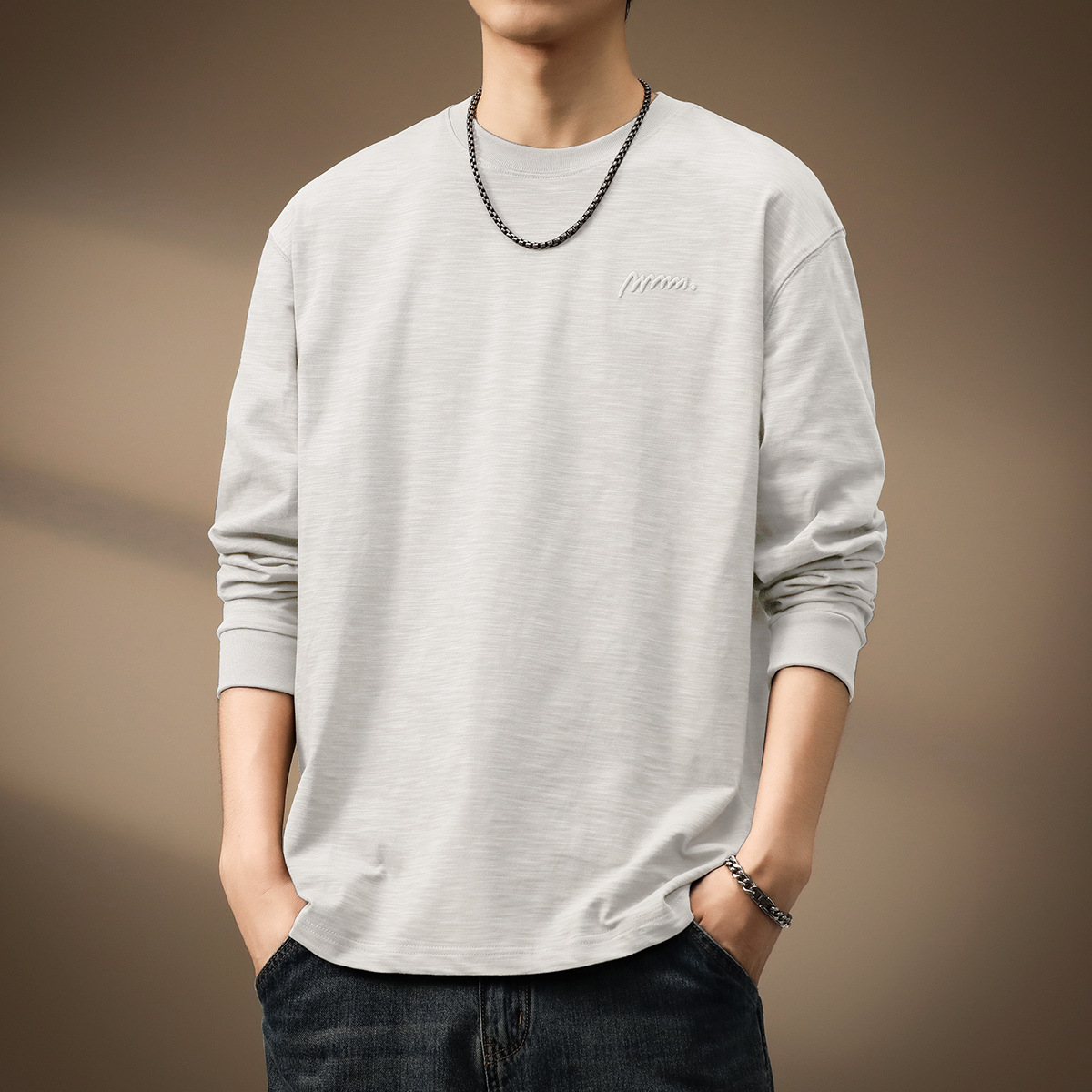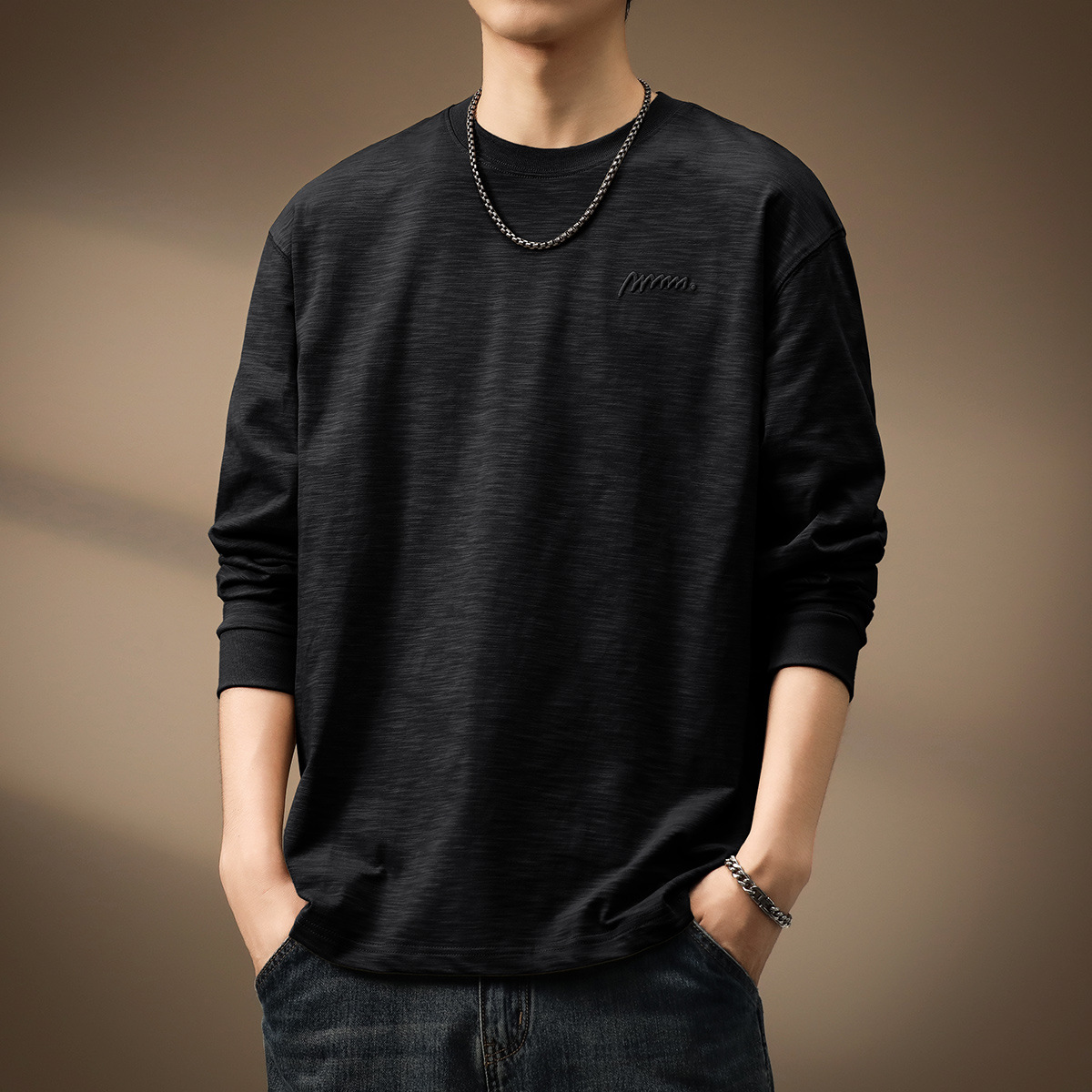 고급 간단한 자수 면봉 긴팔 티셔츠 남성 가을 새로운 일본 빈티지 느슨한 플러스 사이즈 티셔츠 남성스토어 가기