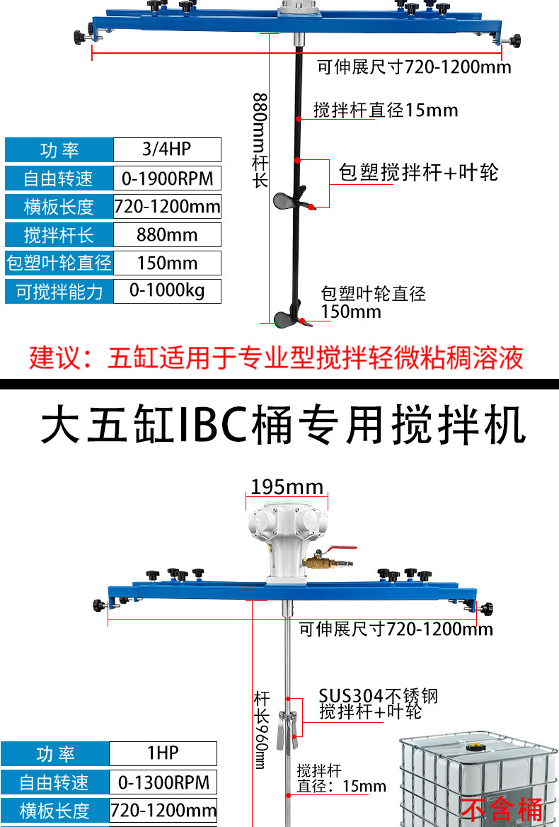 • 대형 5기통 플라스틱 코팅 막대 잎 내산성 및 내알칼리성 믹서