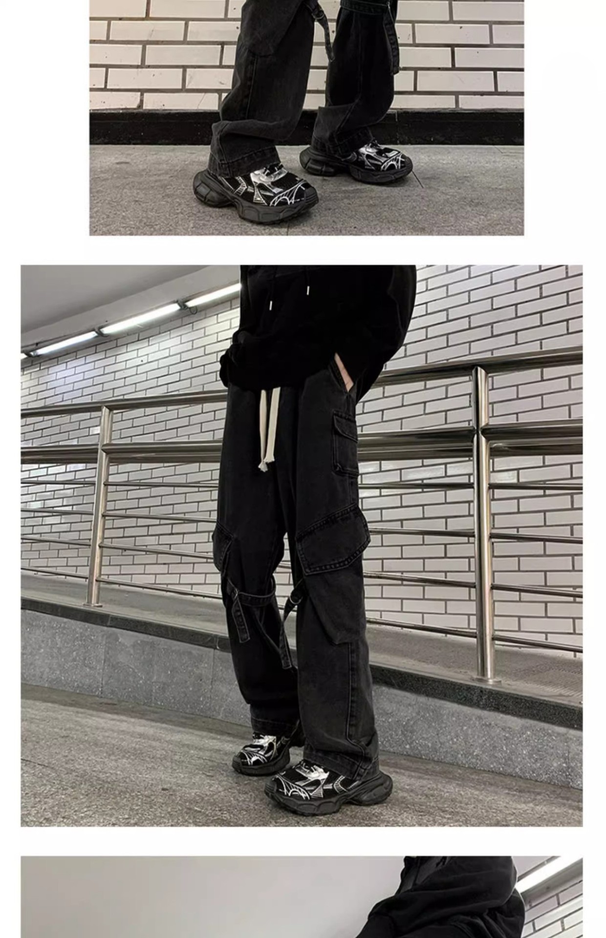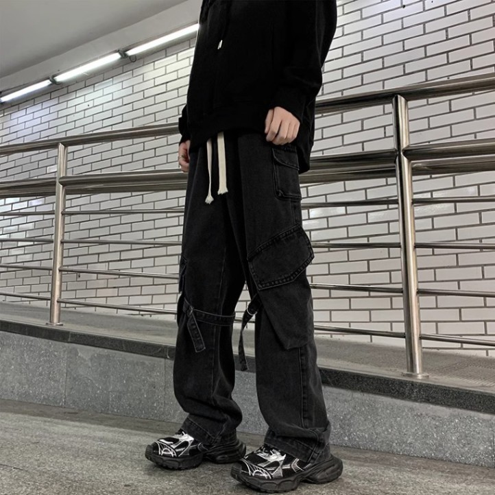 미국식 하이 스트리트 멀티 포켓 툴링 청바지 남자 봄과 가을 새로운 느슨한 넓은 다리 긴 바지 소년 용