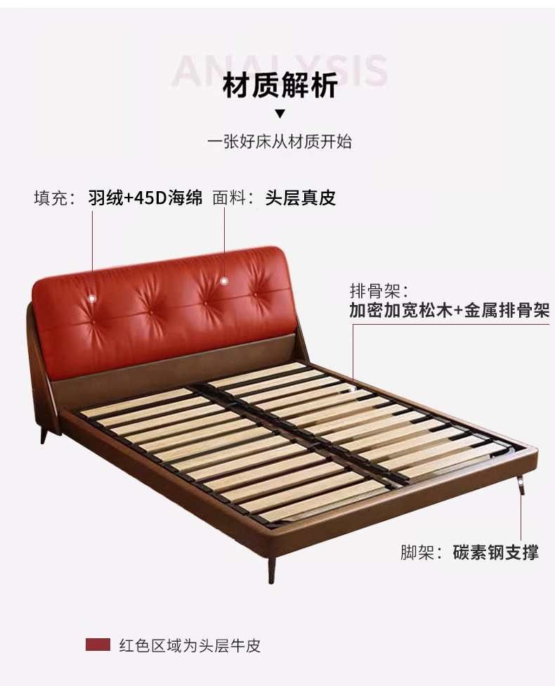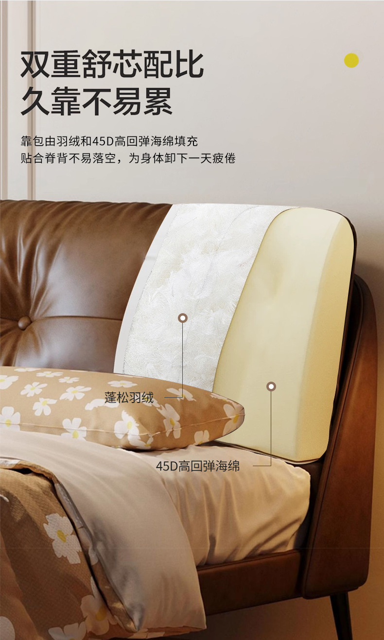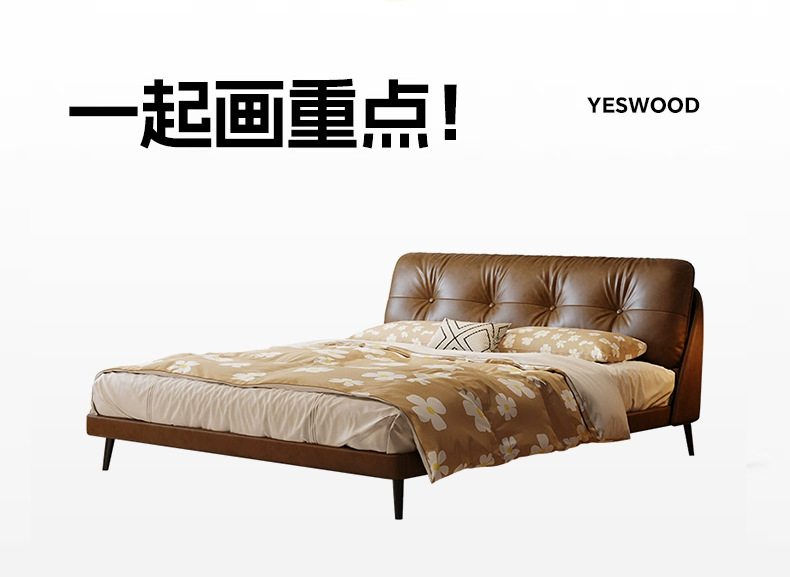 • 180*200; 가죽 침대; 두꺼워진 암호화된 1.6cm 사일런트 배열 프레임; 작은 노란색 소가죽 - 옵션 수