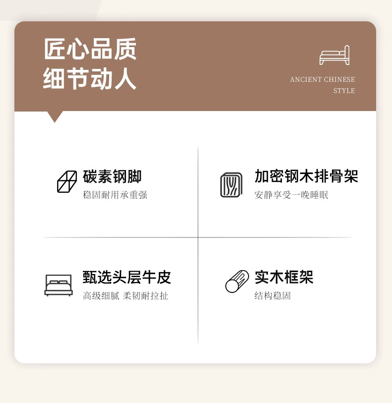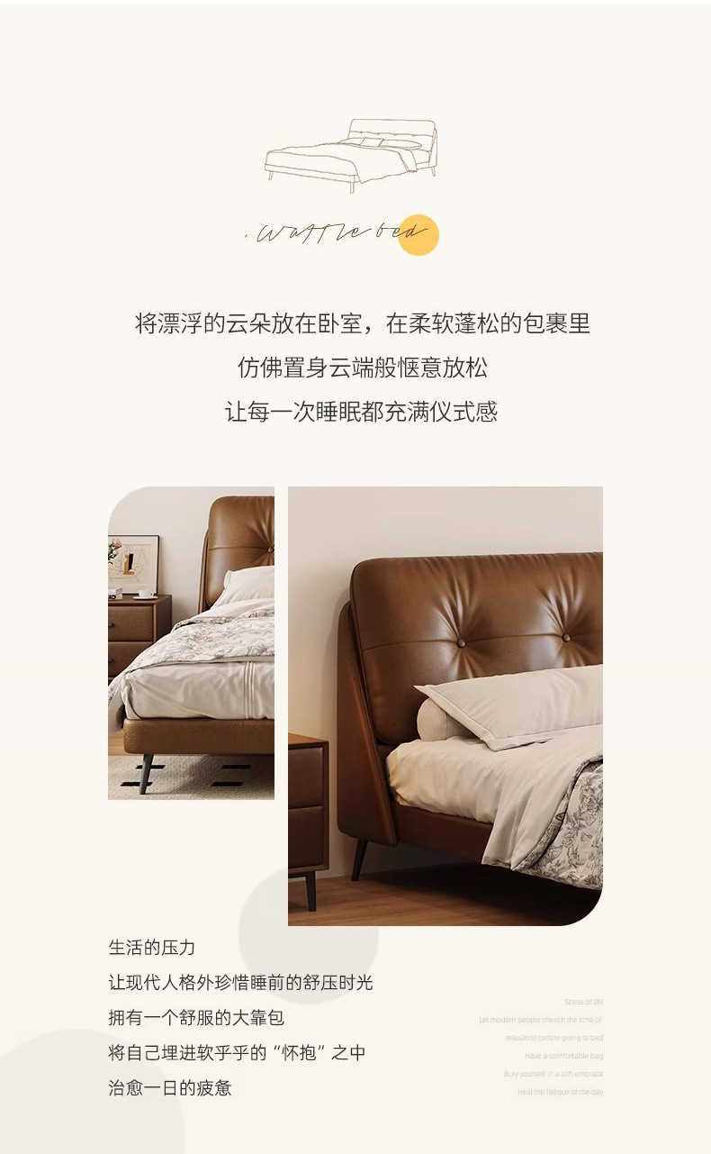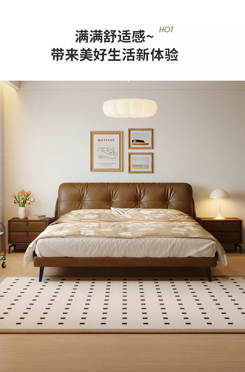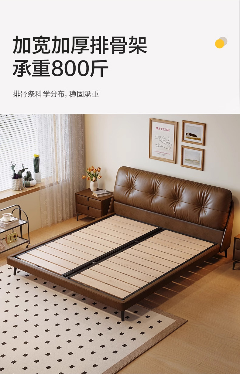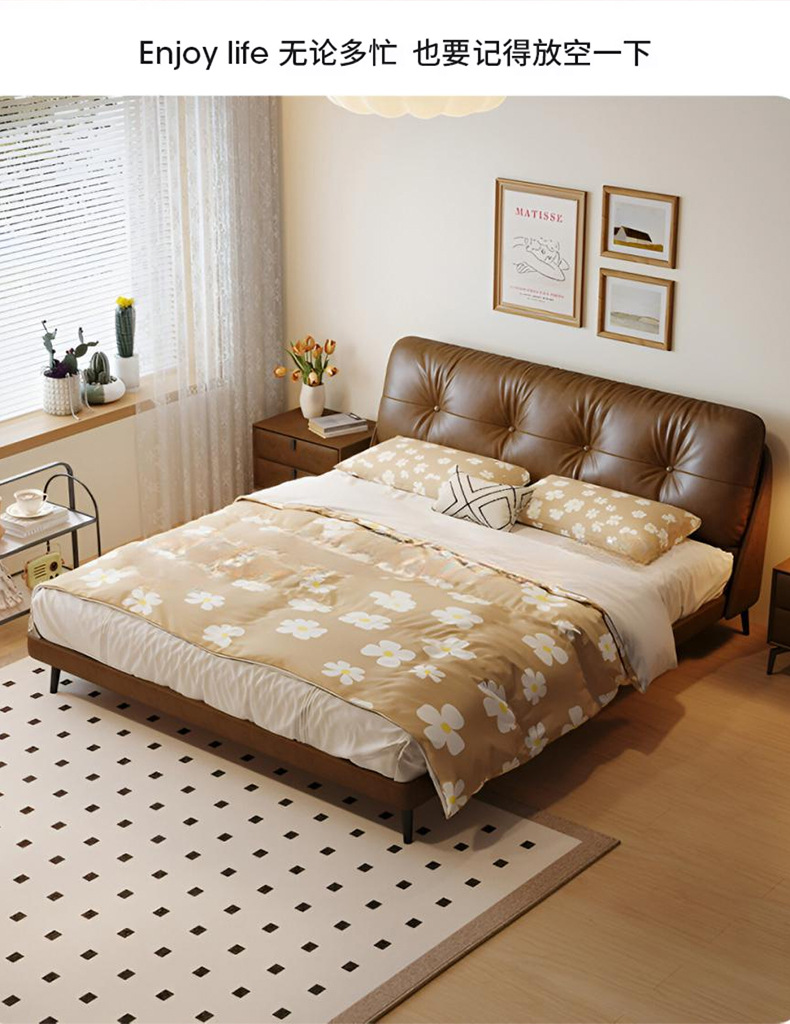 • 200*220, 가죽 침대, 두꺼운 암호화 1.6cm 사일런트 로우 프레임, 작은 노란색 소가죽 - 옵션 수