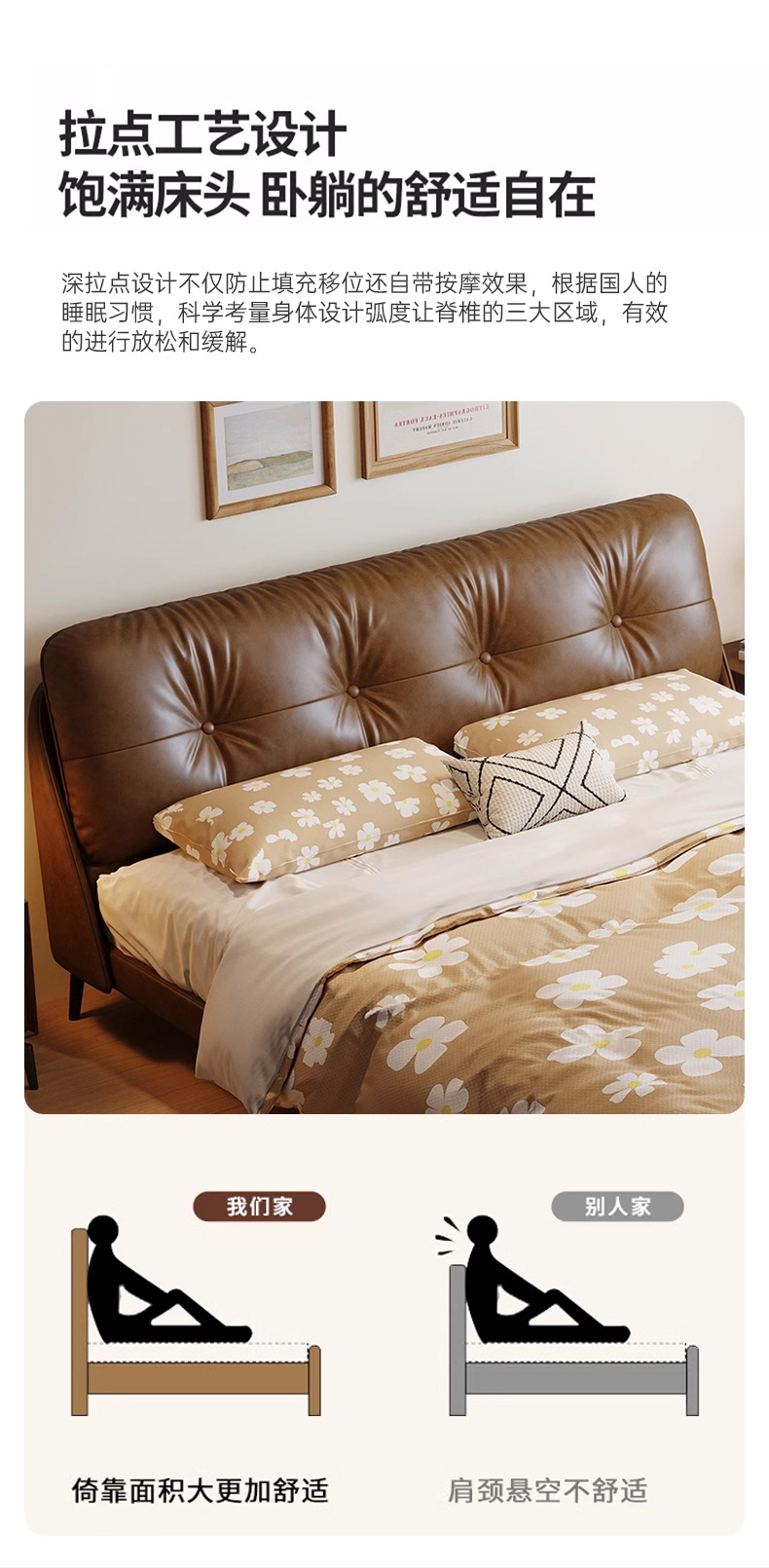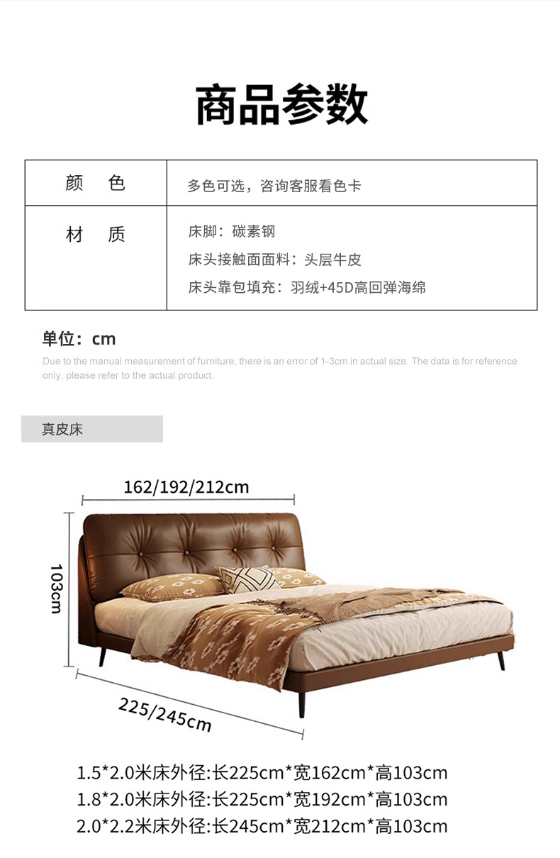 • 200*220, 보관용 가죽 침대, 두꺼운 암호화 1.6cm 사일런트 로우 프레임, 작은 노란색 소가죽 - 옵션 수