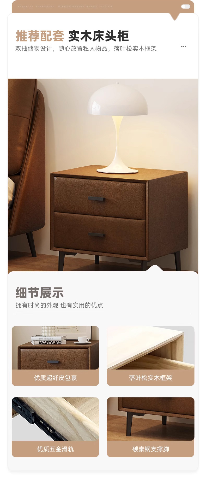 • 200*220, 가죽 침대 + 캐비닛 2개, 두꺼운 암호화 1.6cm 사일런트 로우 프레임, 작은 노란색 소가죽 - 선택 사항