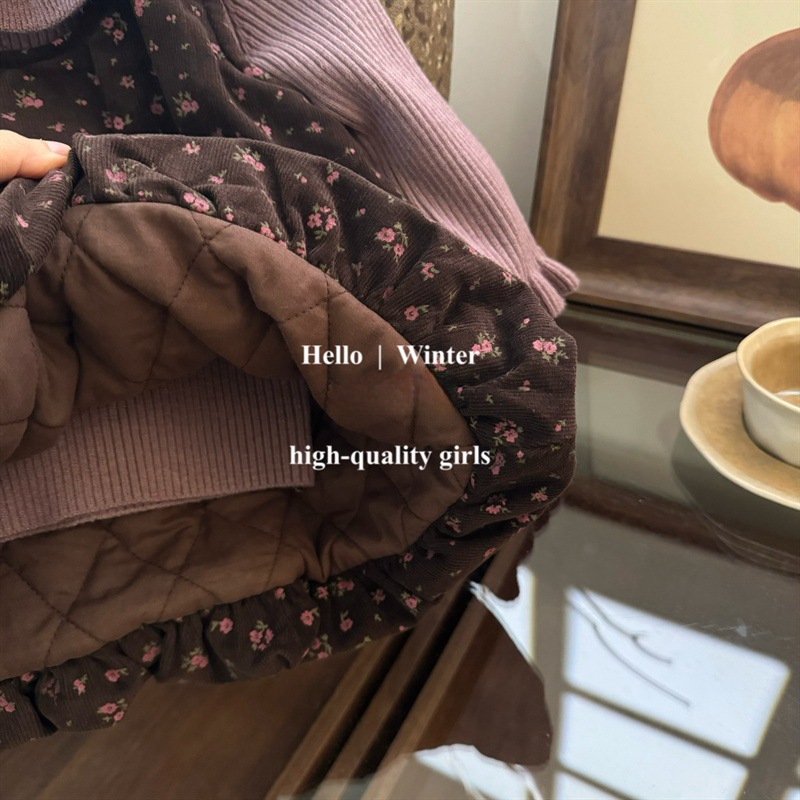 [가을과 겨울의 새로운] 슈퍼 아름다운! 어린이 한국 아동복 소녀 코듀로이 꽃 스커트 스웨터 스타일라인 세트스토어 가기