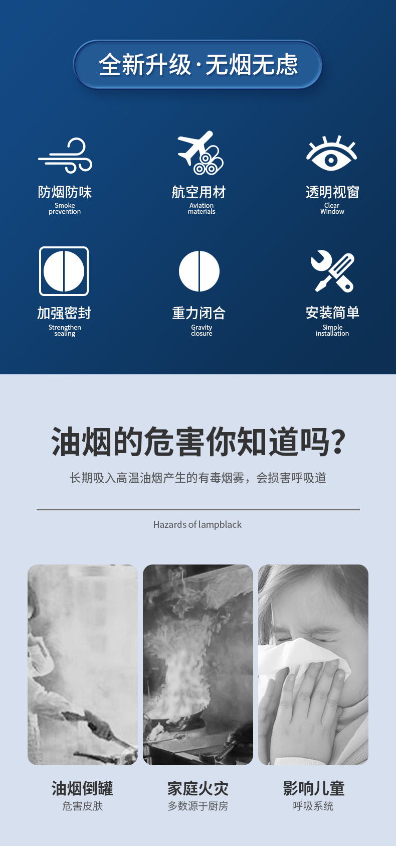 • ??【쉬운 설치】 업그레이드된 ABS 강화 씰은 연기나 물이 새지 않습니다.