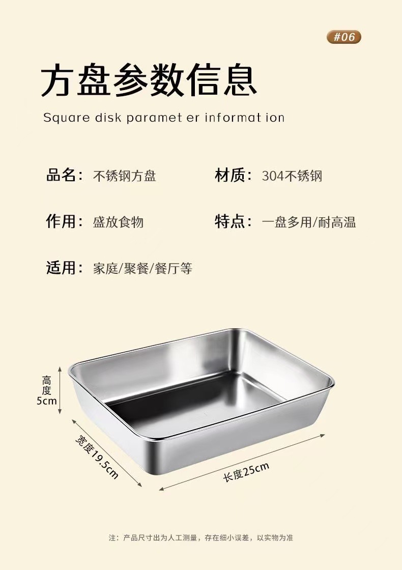 인터넷 인기 두꺼운 스테인리스 수건 트레이 티라미수 냉채 접시 밥 접시 신선 보관 상자 준비용 접시