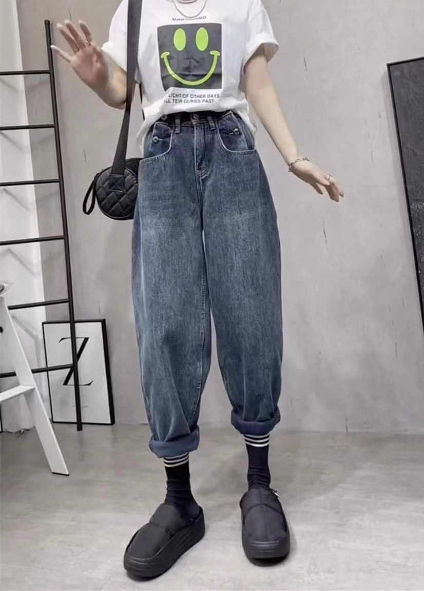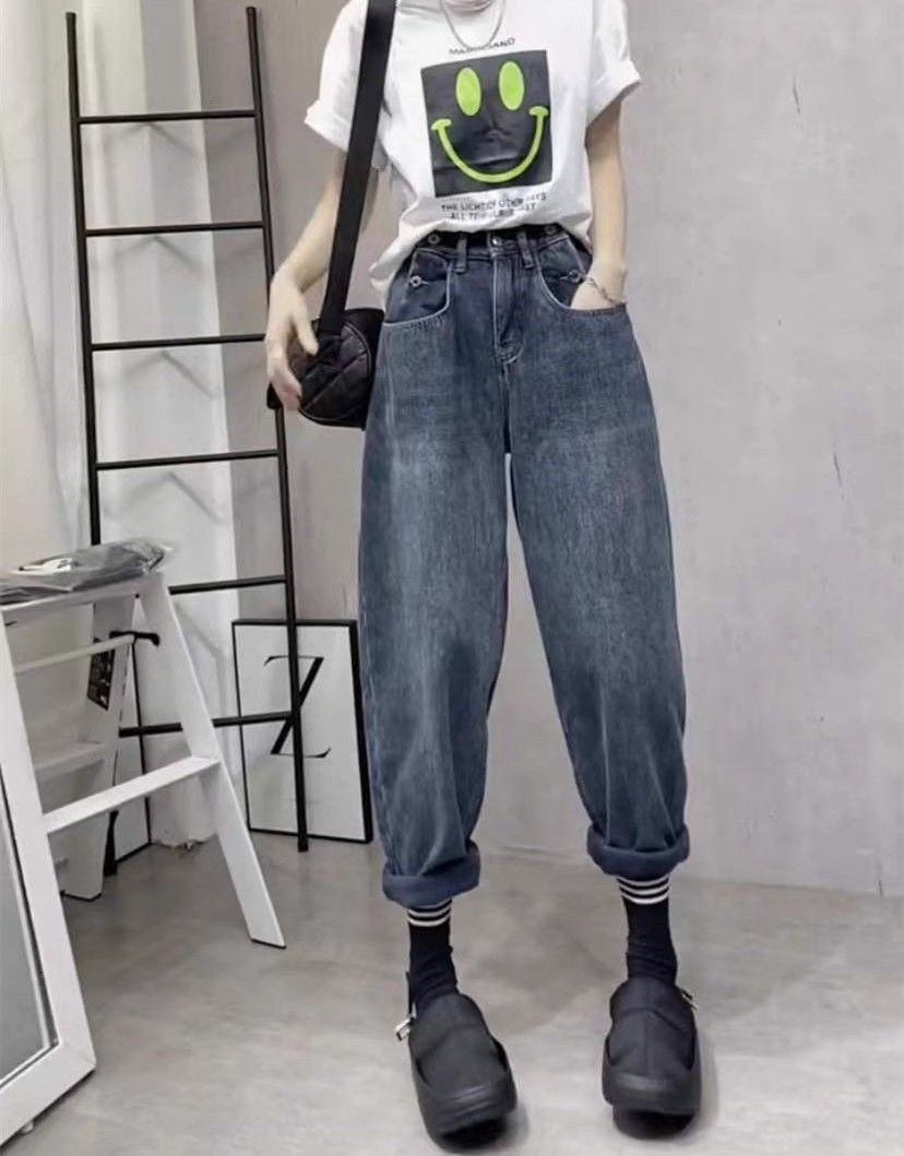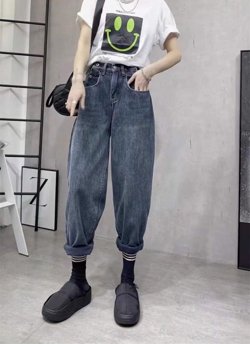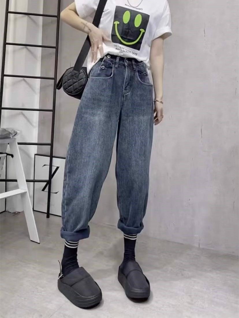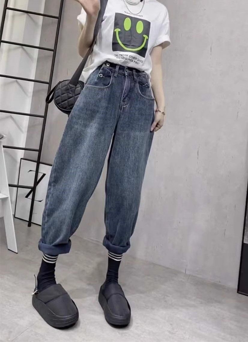 배 모양의 겨울 기모 두꺼운 넓은 다리 청바지 여성용 2024 플러스 사이즈 통통녀 슬리밍 할란 토레 바지