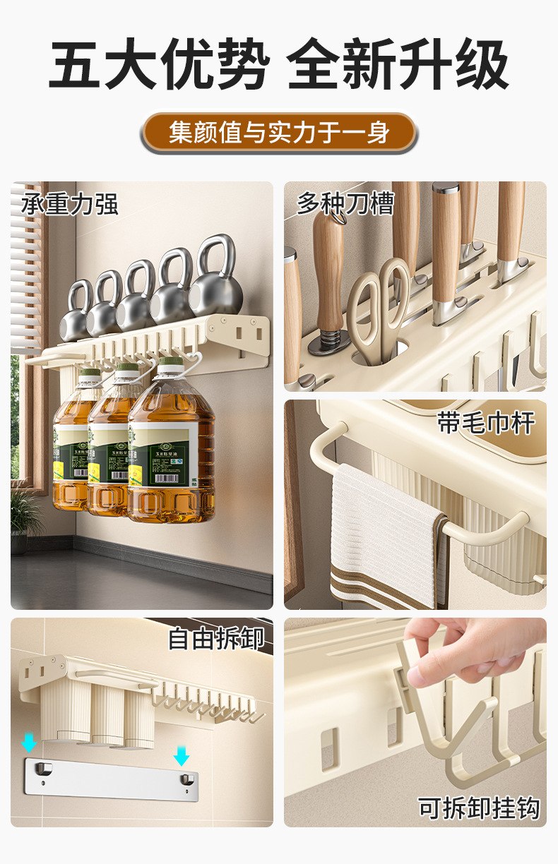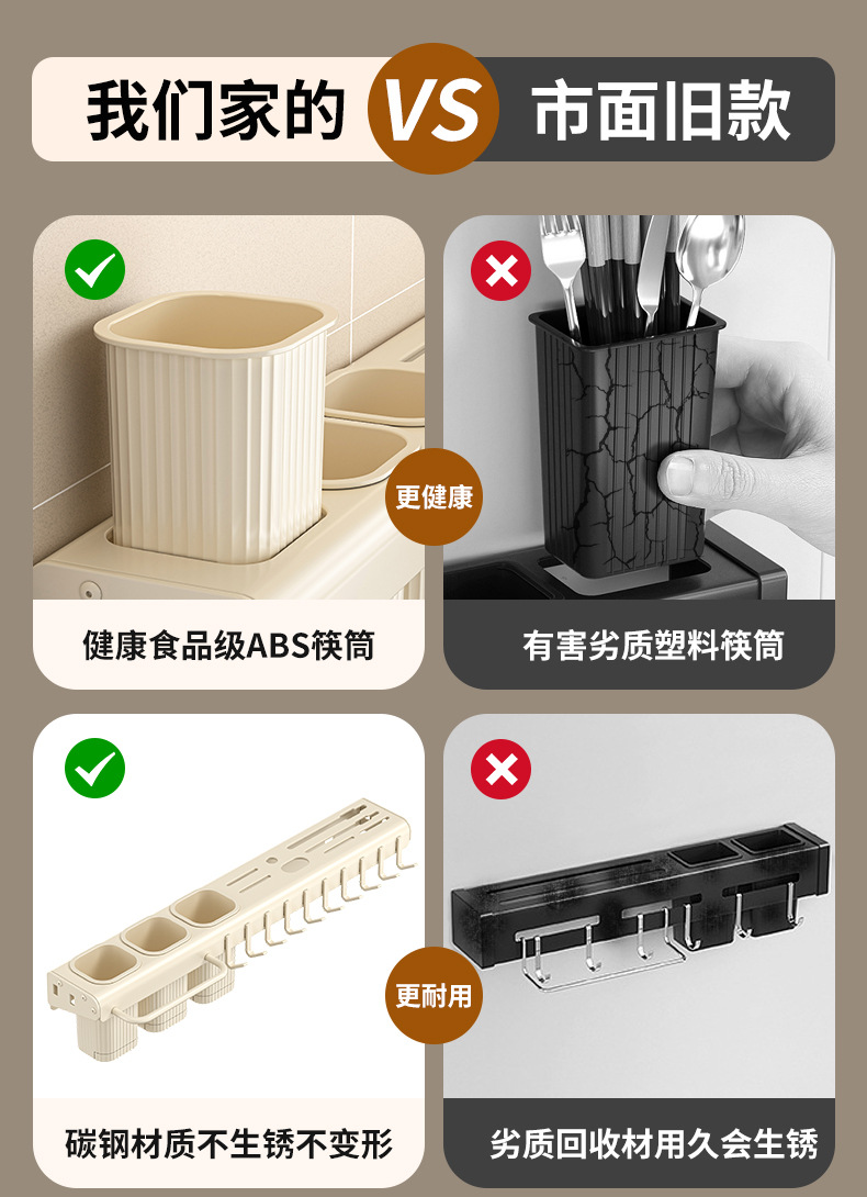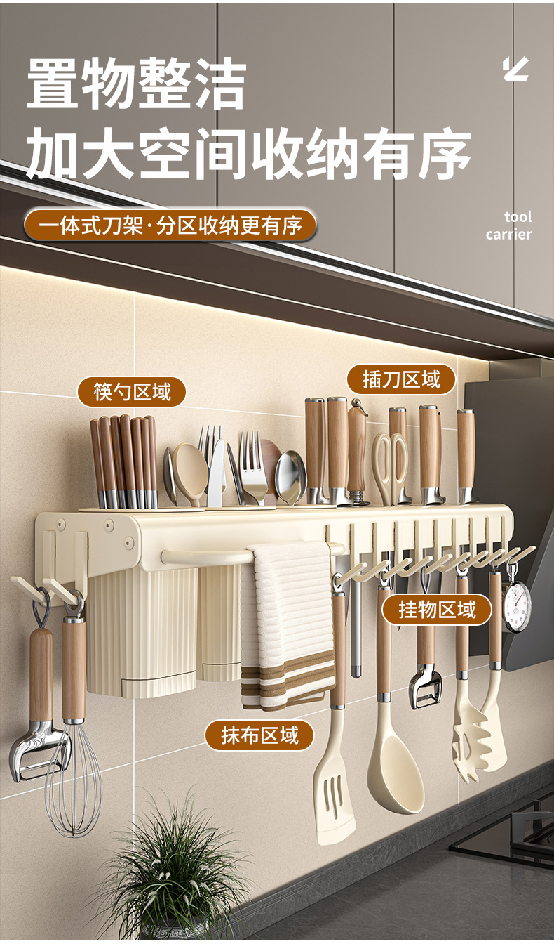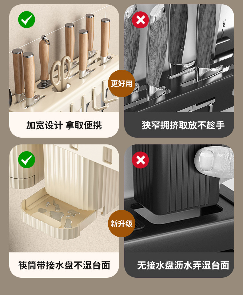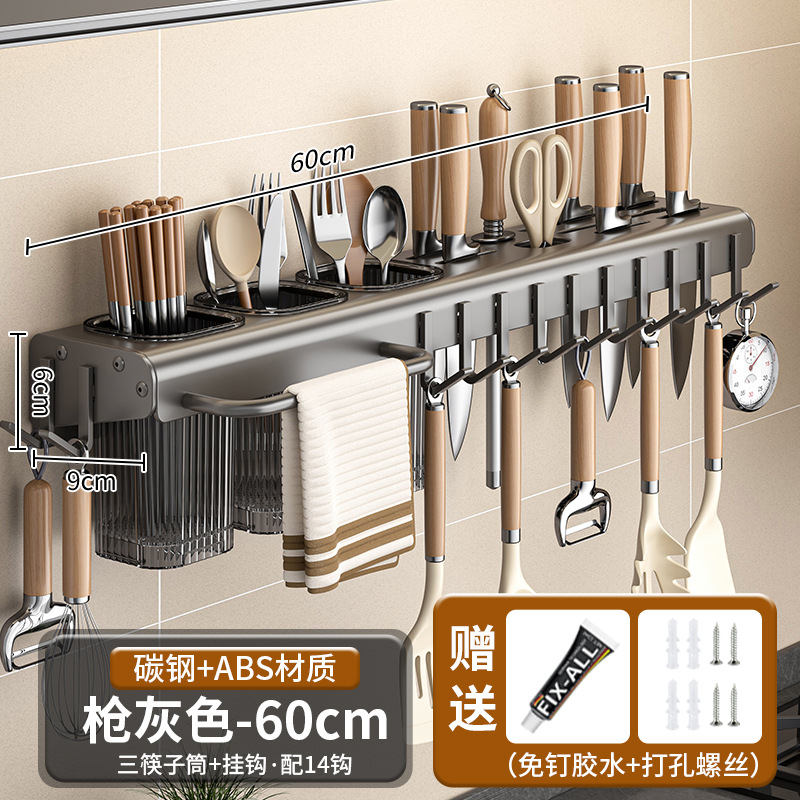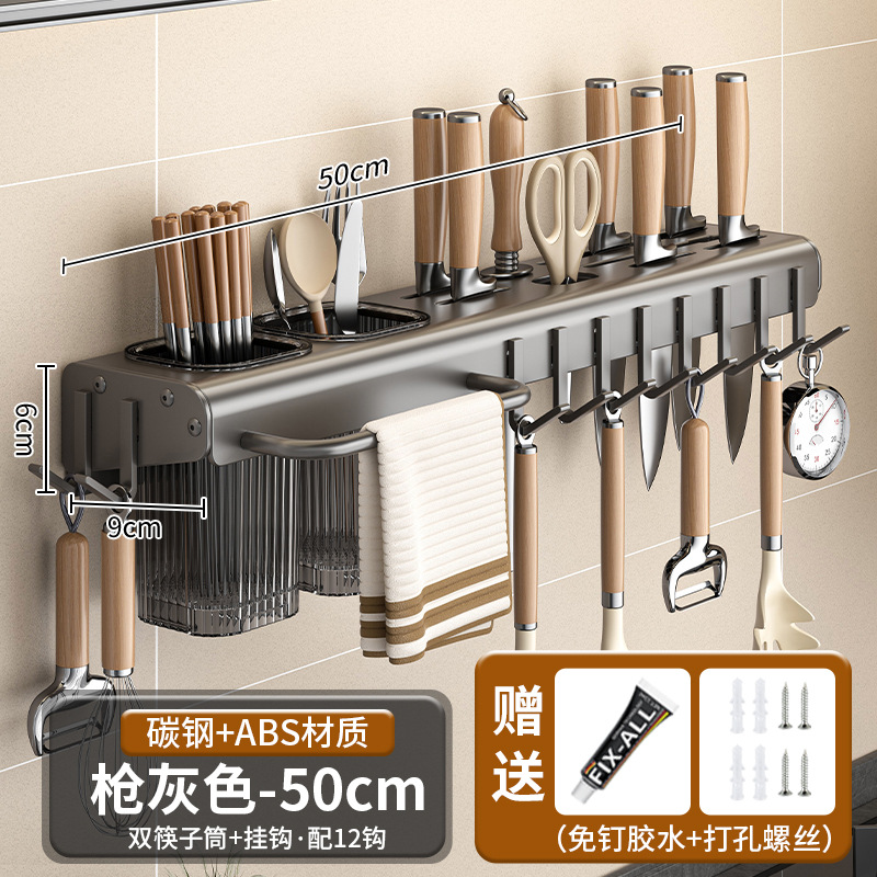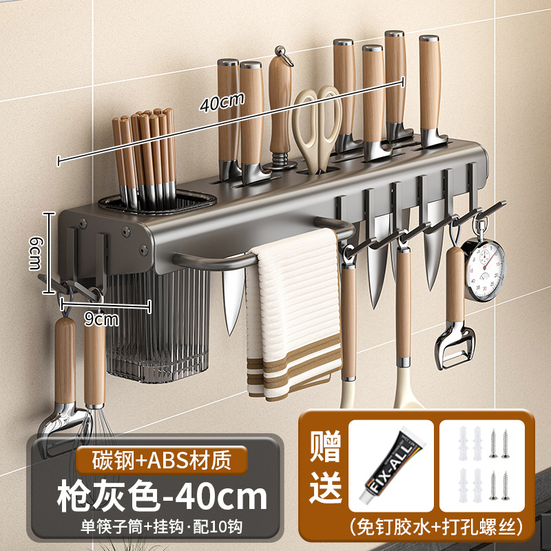 가정용 주방 다기능 보관 랙 나이프 홀더 젓가락 홀더 펀치가없는 탄소 강철 칼 저장 랙 벽 장착 젓가락 케이지