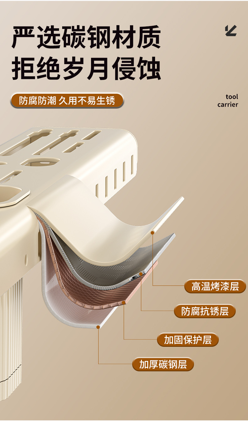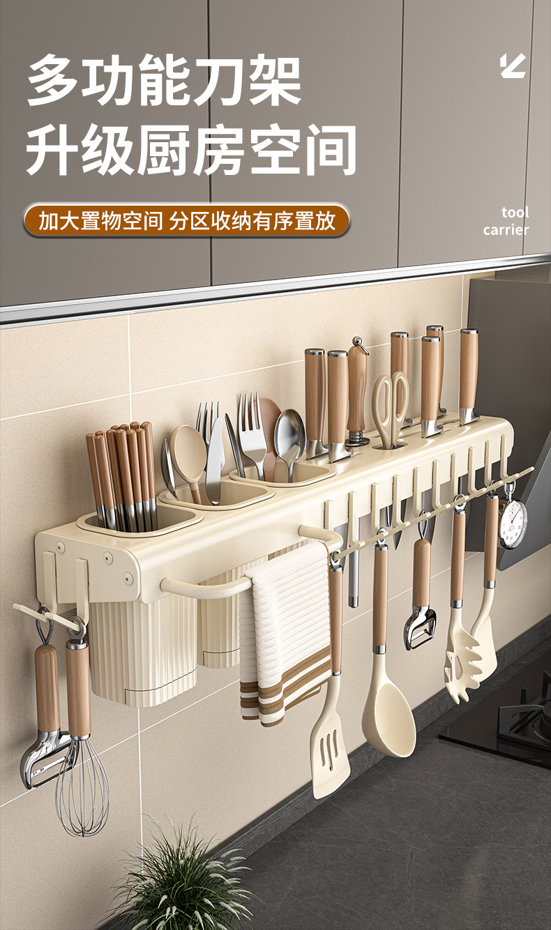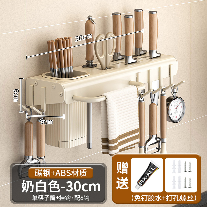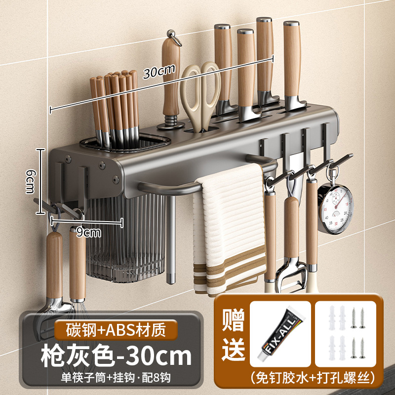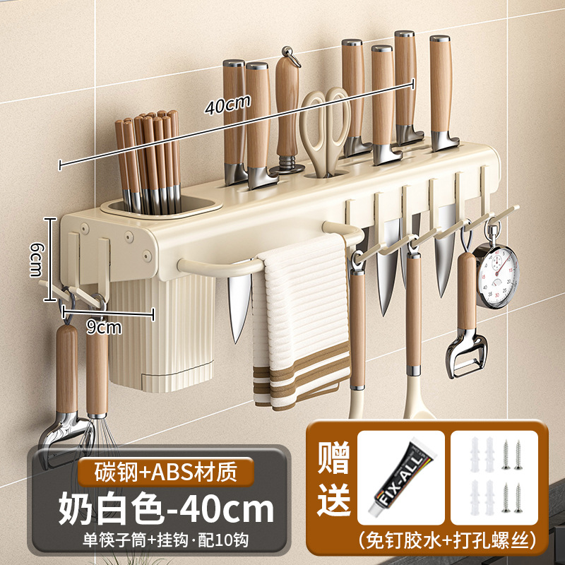 가정용 주방 다기능 보관 랙 나이프 홀더 젓가락 홀더 펀치가없는 탄소 강철 칼 저장 랙 벽 장착 젓가락 케이지스토어 가기