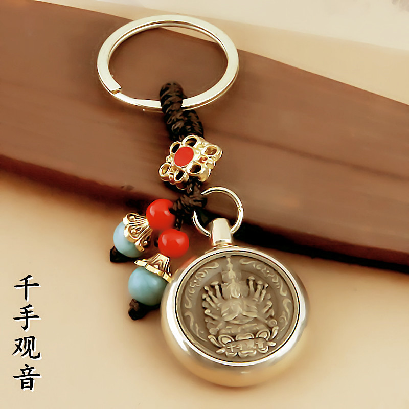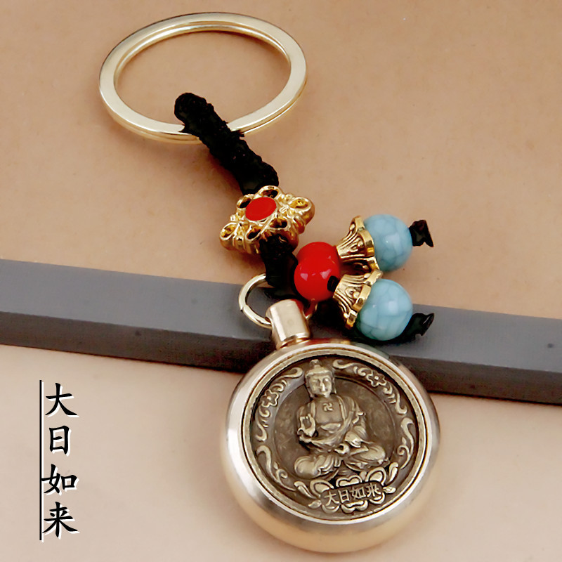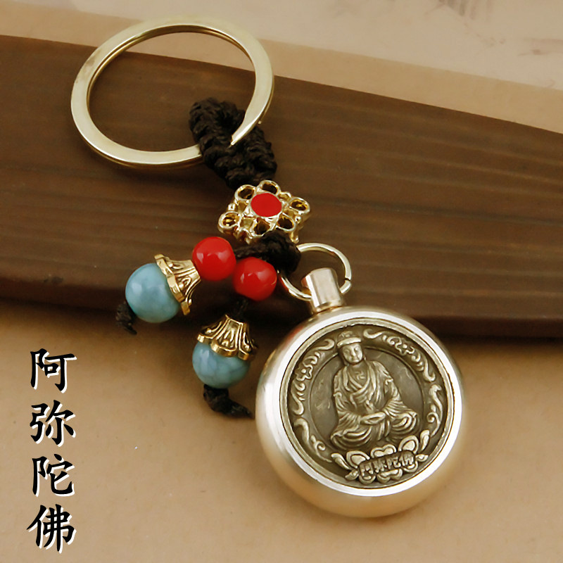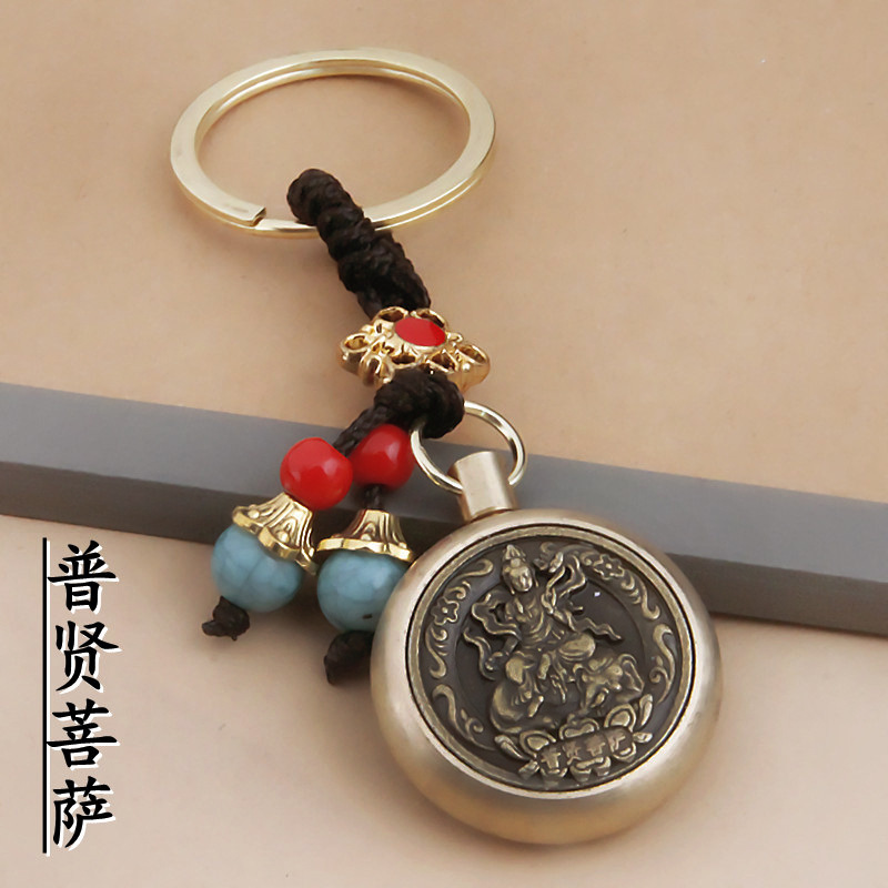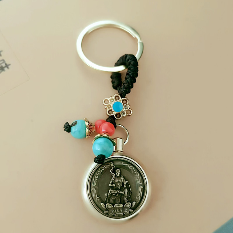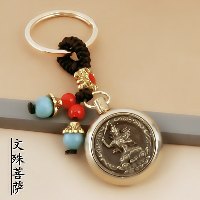 녹색 구슬 로프 황동 순수 구리 럭키 머니 만들기 자동차 펜던트 여덟 후원자 성인 조디악 머니 턴 키 체인